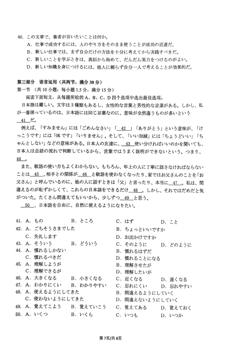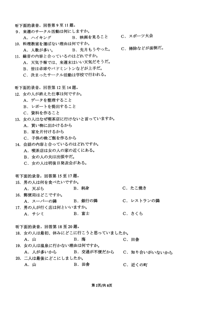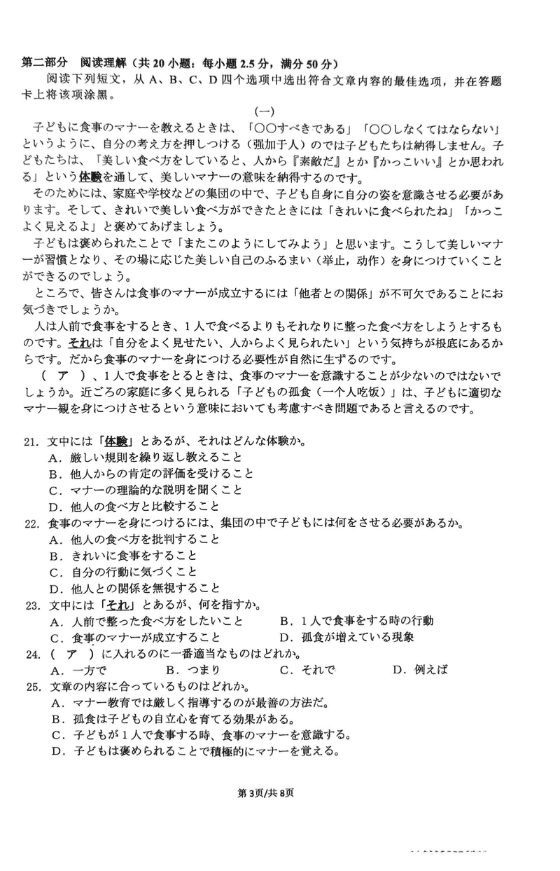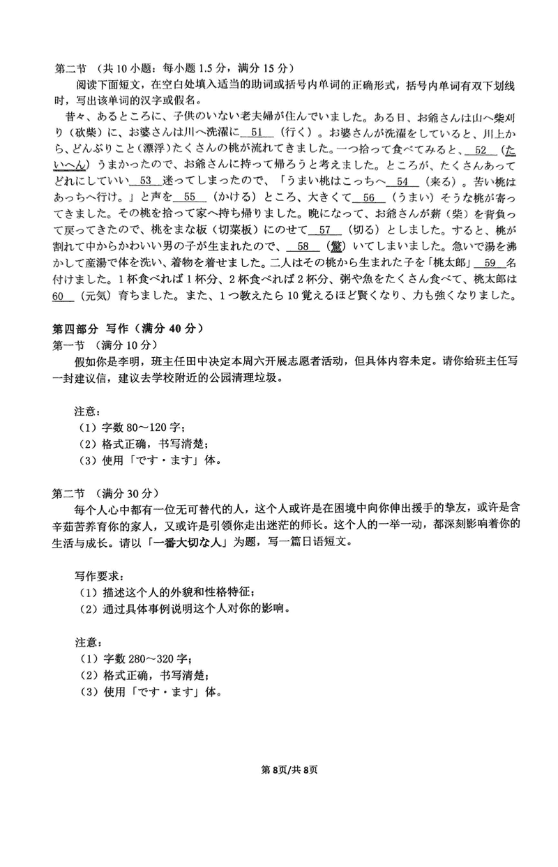 湖北新八校协作体2025年高三5月壮行日语试题及答案