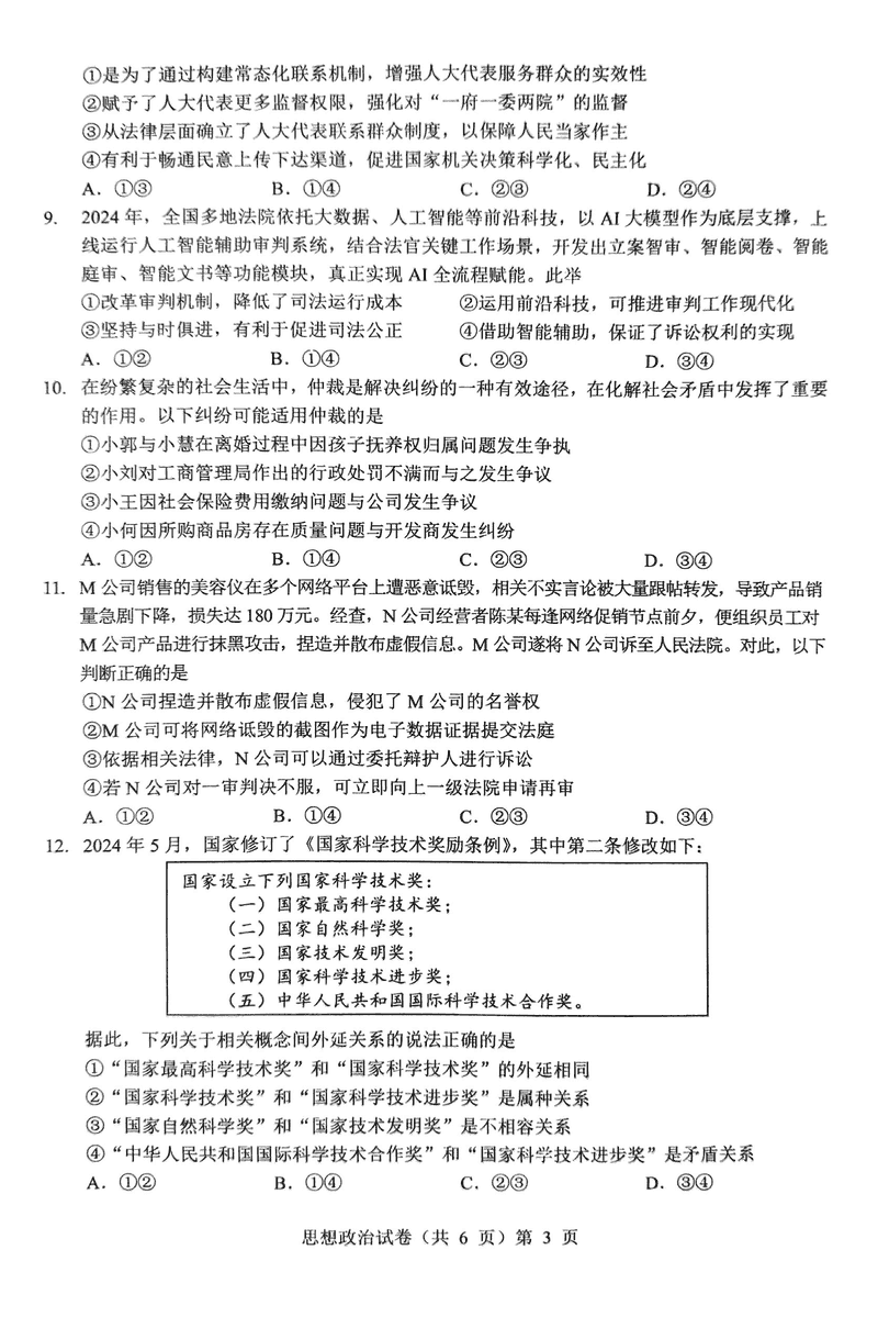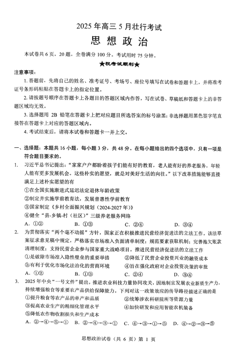 湖北新八校协作体2025年高三5月壮行政治试题及答案