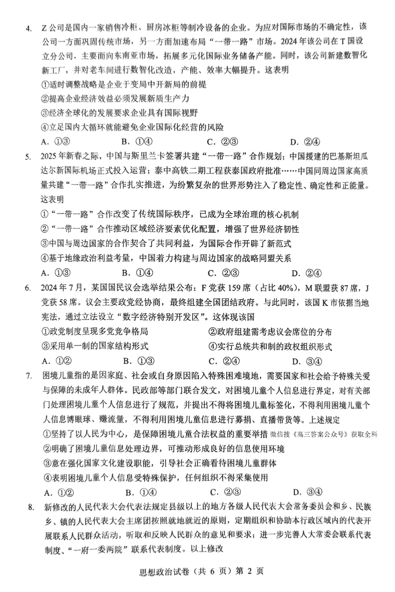 湖北新八校协作体2025年高三5月壮行政治考试已于近日开考,为方便考生考后及时查看考试情况,查漏补缺、弥补不足,本文整理了试题答案解析相关信息!