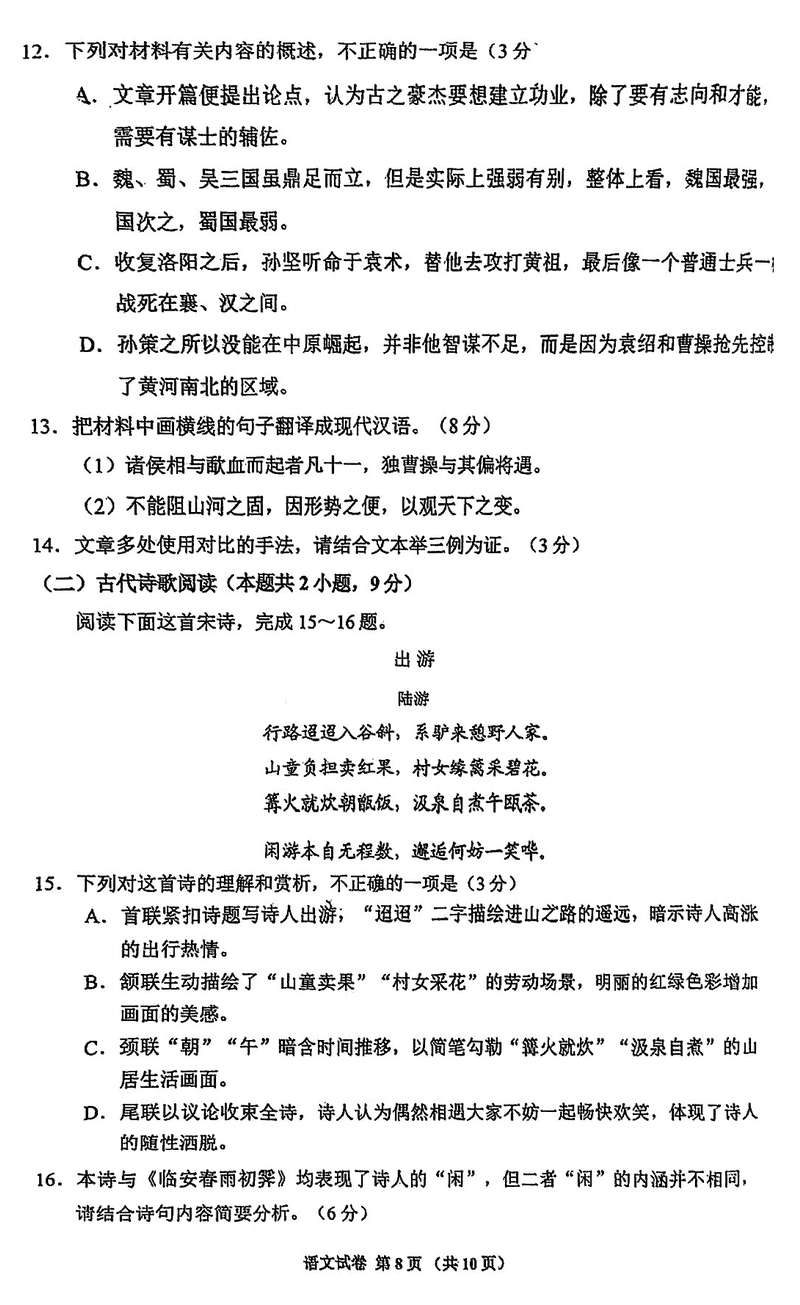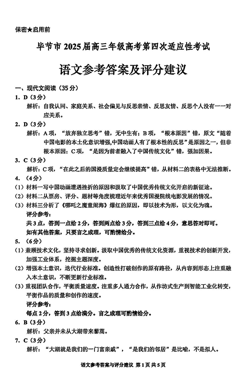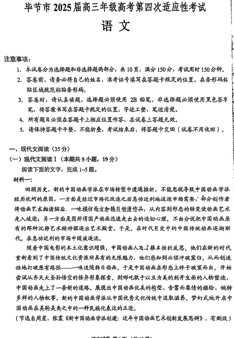 贵州毕节2025届高考第四次适应性考语文试题及答案 时间:2025-05-18 贵州 语文试题 贵州毕节2025届高考第四次适应性考语文考试已于近日开考,为方便考生考后及时查看考试情况,查漏补缺、弥补不足,本文整理了试题答案解析相关信息! 汇总:贵州毕节2025届高考第四次适应性考试试题及答案汇总 语文试题及答案解析