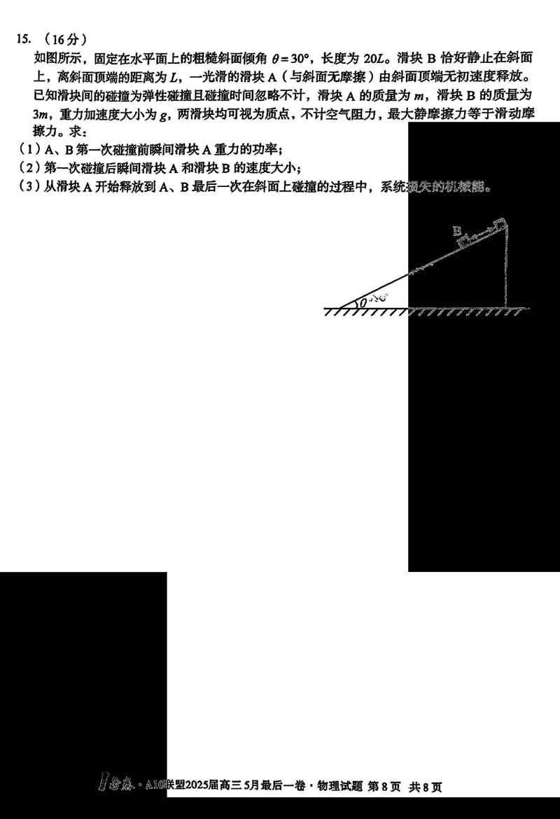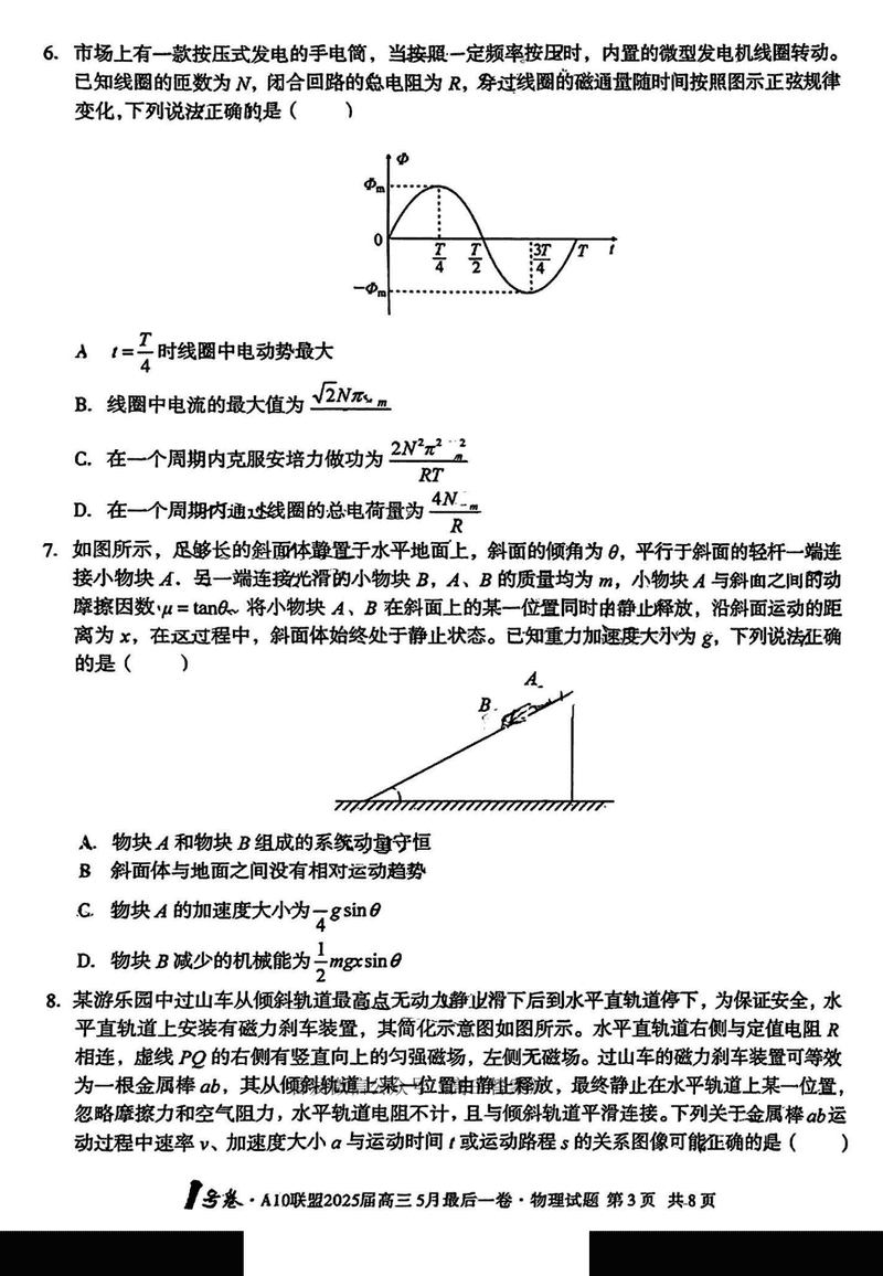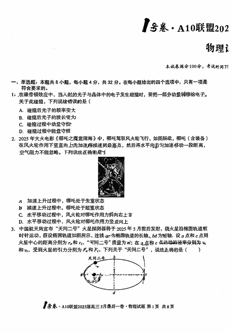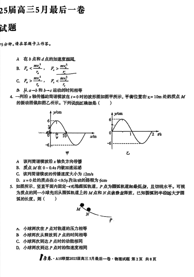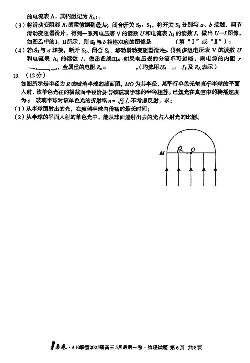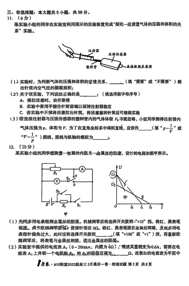 安徽A10联盟2025届高三最后一卷物理试题及答案 时间:2025-05-18 安徽 理综试题 安徽A10联盟2025届高三最后一卷物理考试已于近日开考,为方便考生考后及时查看考试情况,查漏补缺、弥补不足,本文整理了试题答案解析相关信息! 汇总:安徽A10联盟2025届高三最后一卷试题及答案汇总 物理试题及答案解析