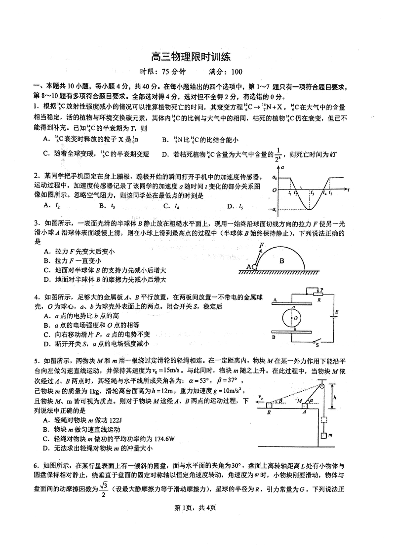湖北华中师大一附中2025年高三五月限时训练物理试题及答案