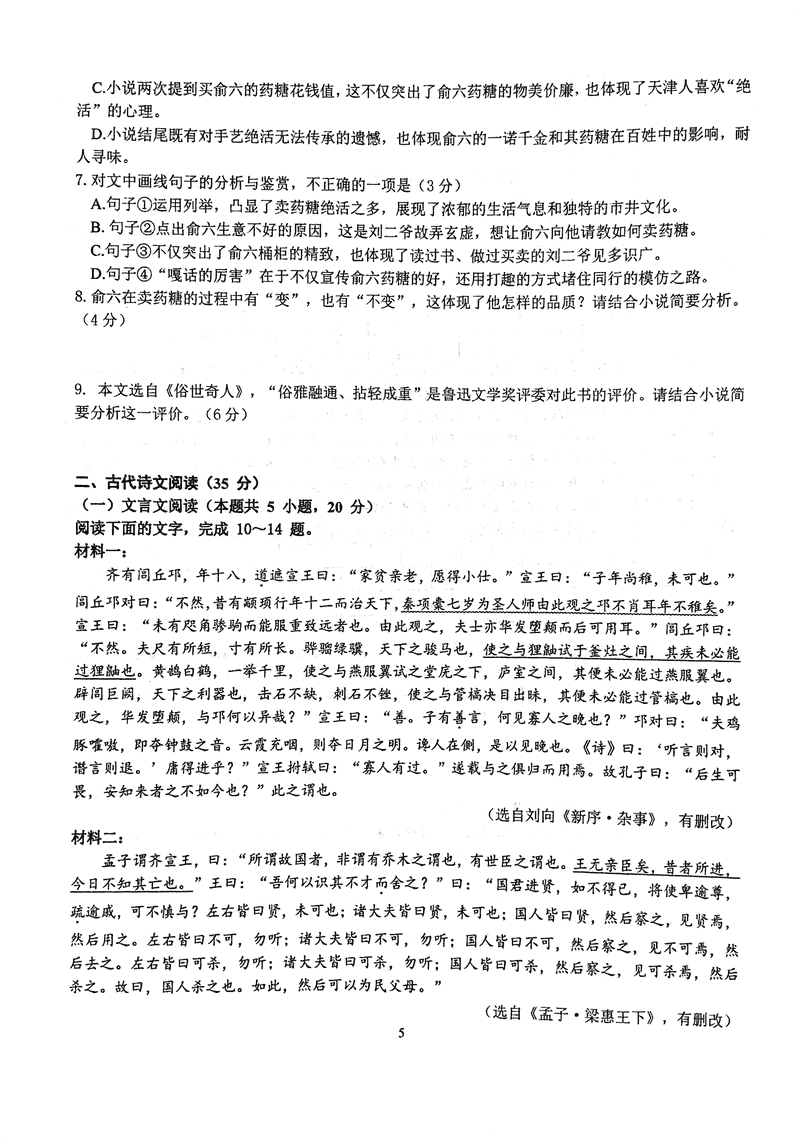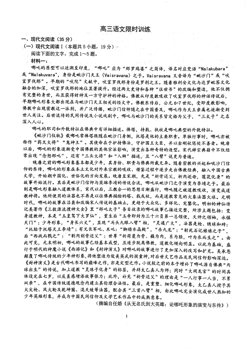 湖北华中师大一附中2025年高三五月限时训练语文试题及答案