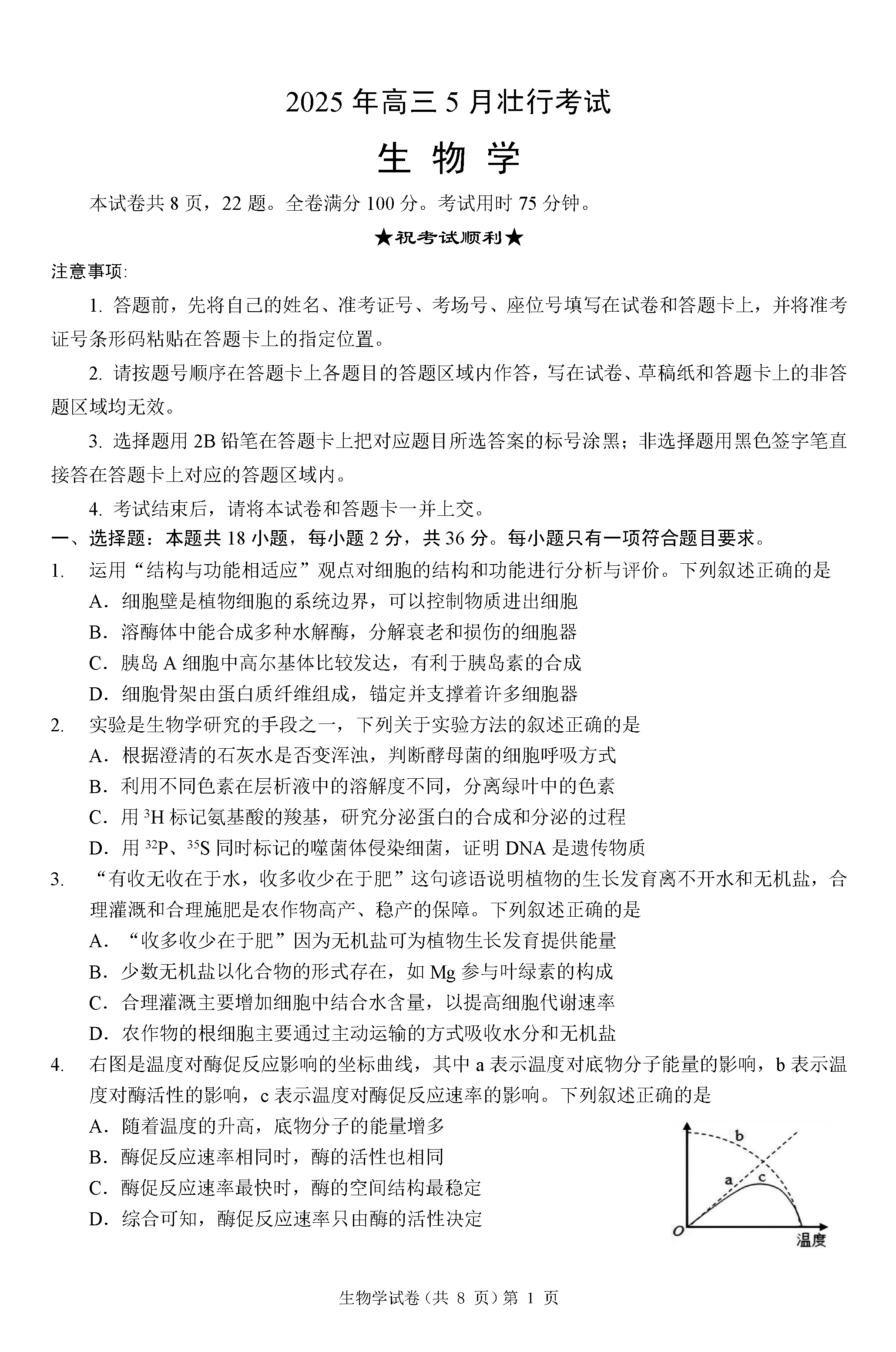 湖北新八校协作体2025年高三5月壮行生物试题及答案