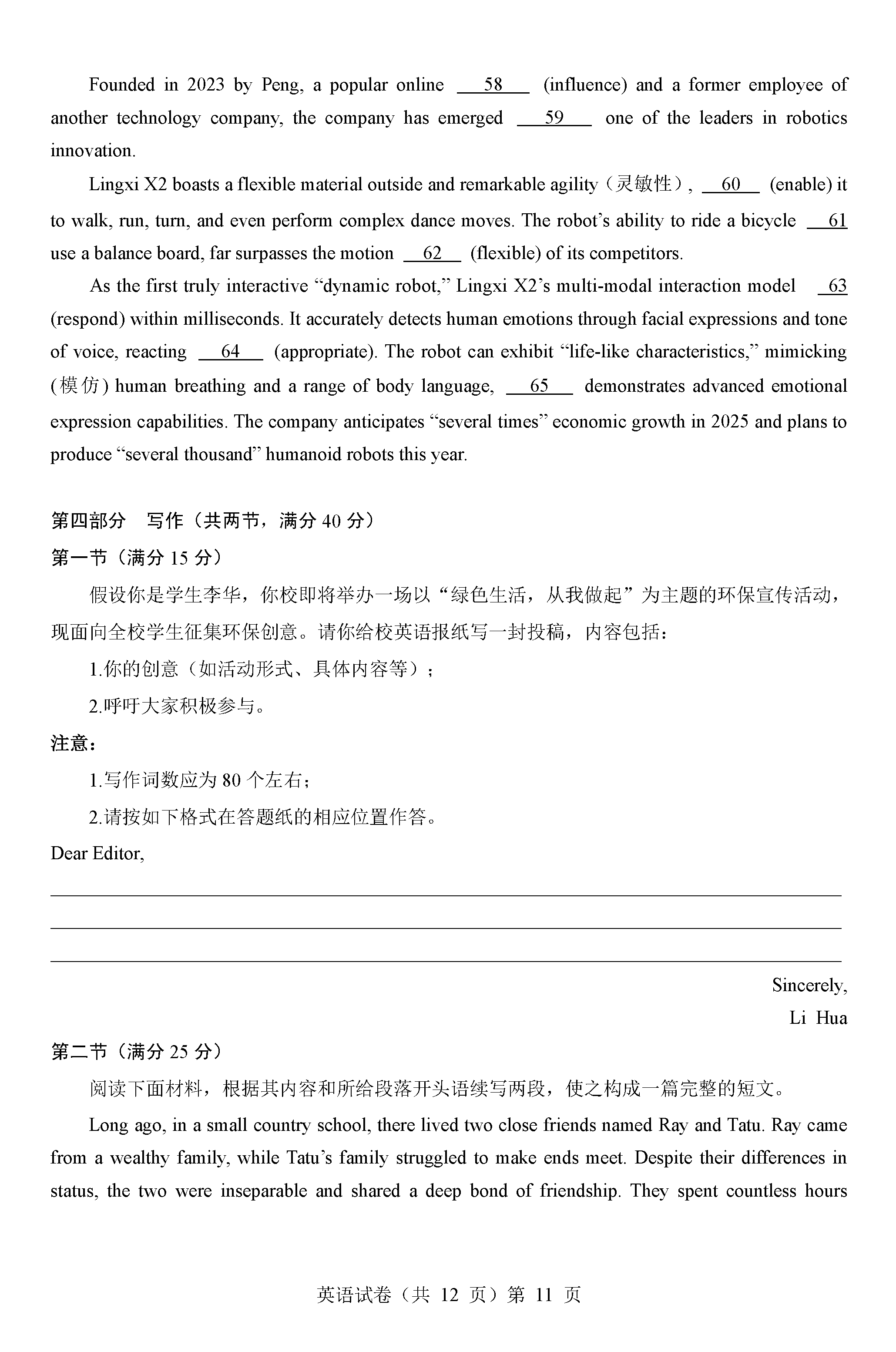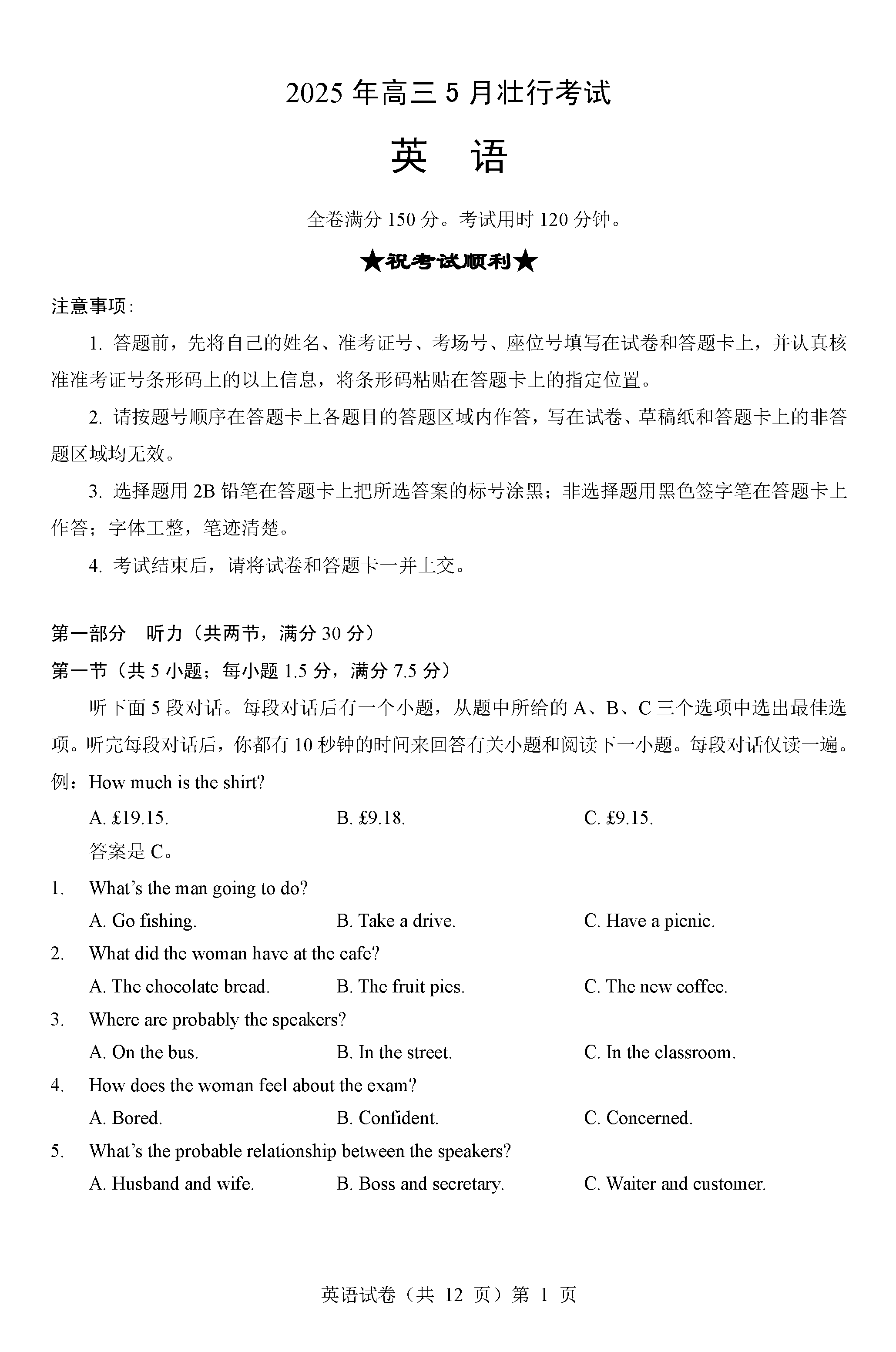 湖北新八校协作体2025年高三5月壮行英语试题及答案