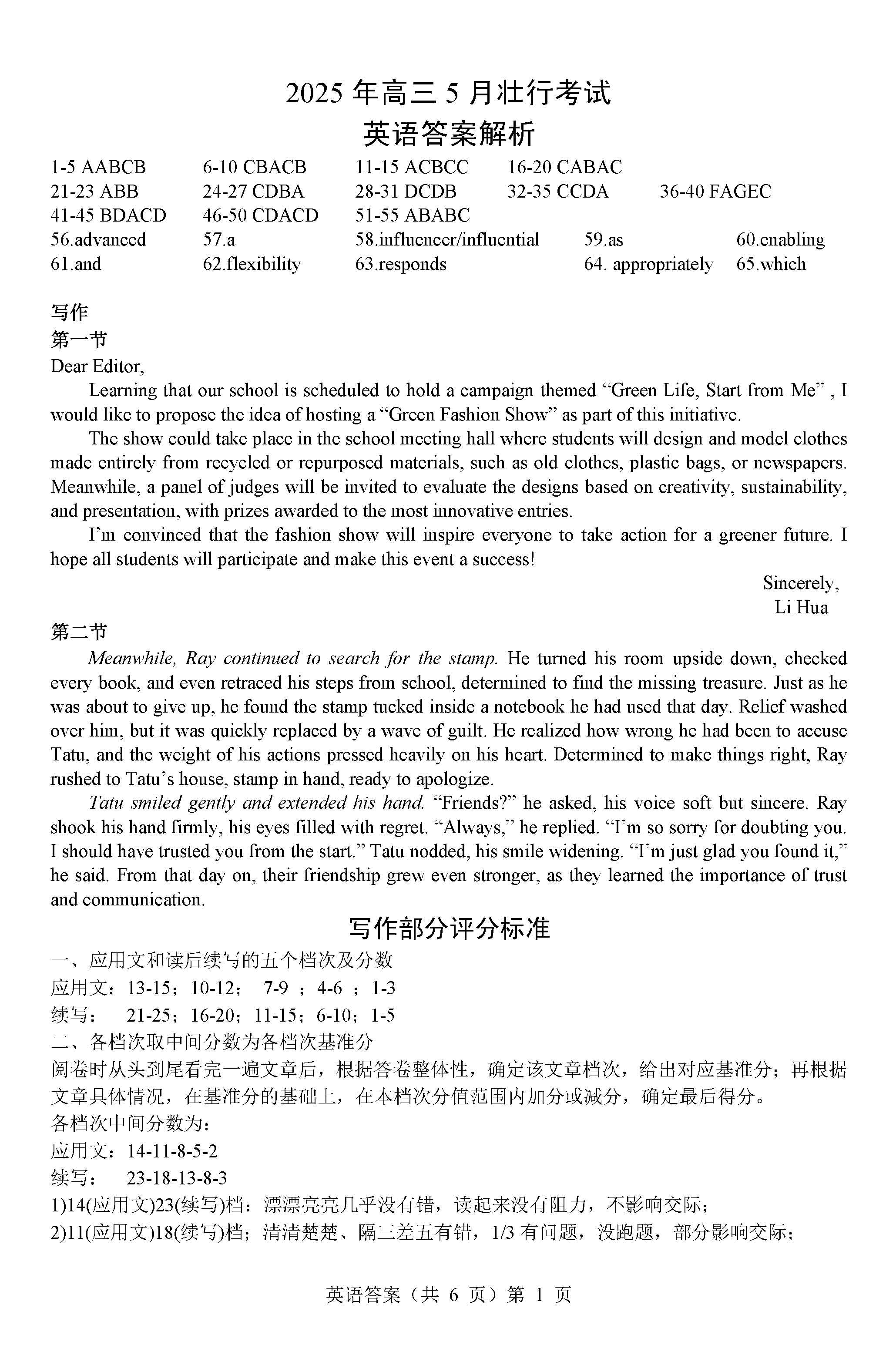 湖北新八校协作体2025年高三5月壮行英语考试已于近日开考,为方便考生考后及时查看考试情况,查漏补缺、弥补不足,本文整理了试题答案解析相关信息!