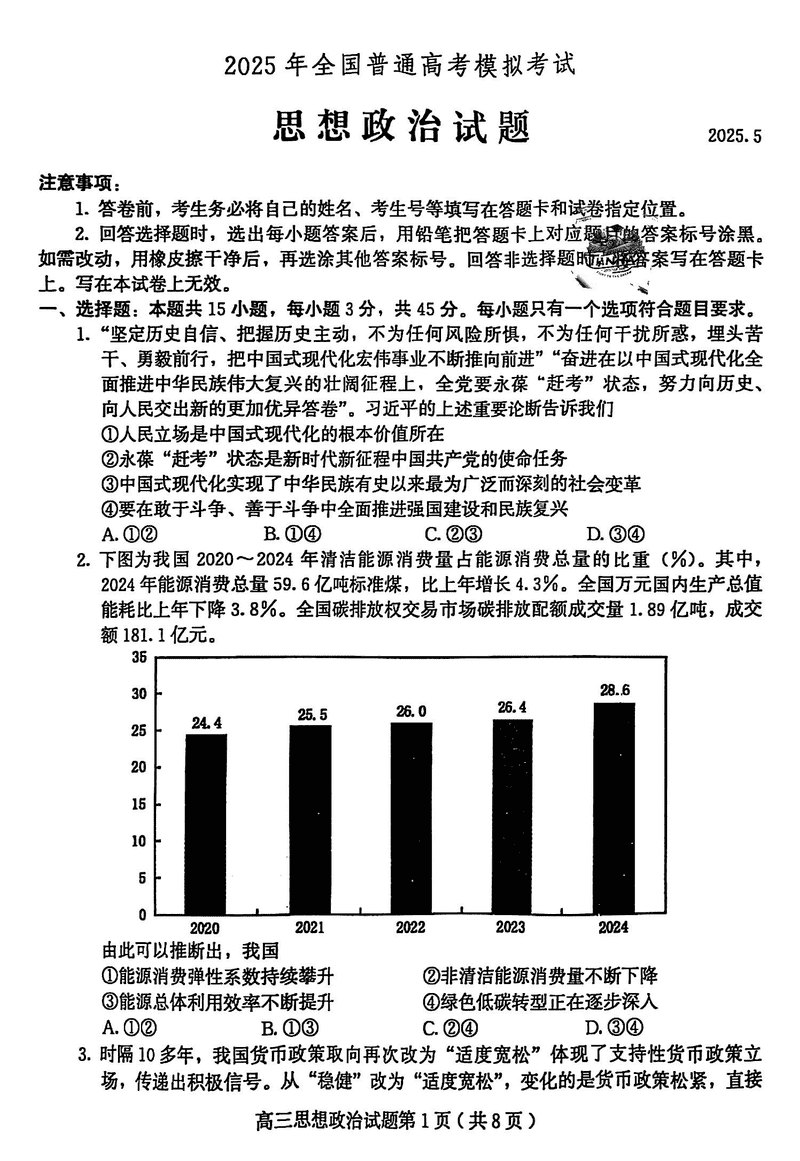 山东四县联考2025年5月高考模考政治试题及答案 时间:2025-05-18 山东 文综试题 山东四县联考(日照五莲+潍坊安丘+诸城+临沂兰山)2025年5月高考模考政治考试已于近日开考,为方便考生考后及时查看考试情况,查漏补缺、弥补不足,本文整理了试题答案解析相关信息! 汇总:山东四县联考2025年5月高考模考试题及答案汇总 政治试题及答案解析