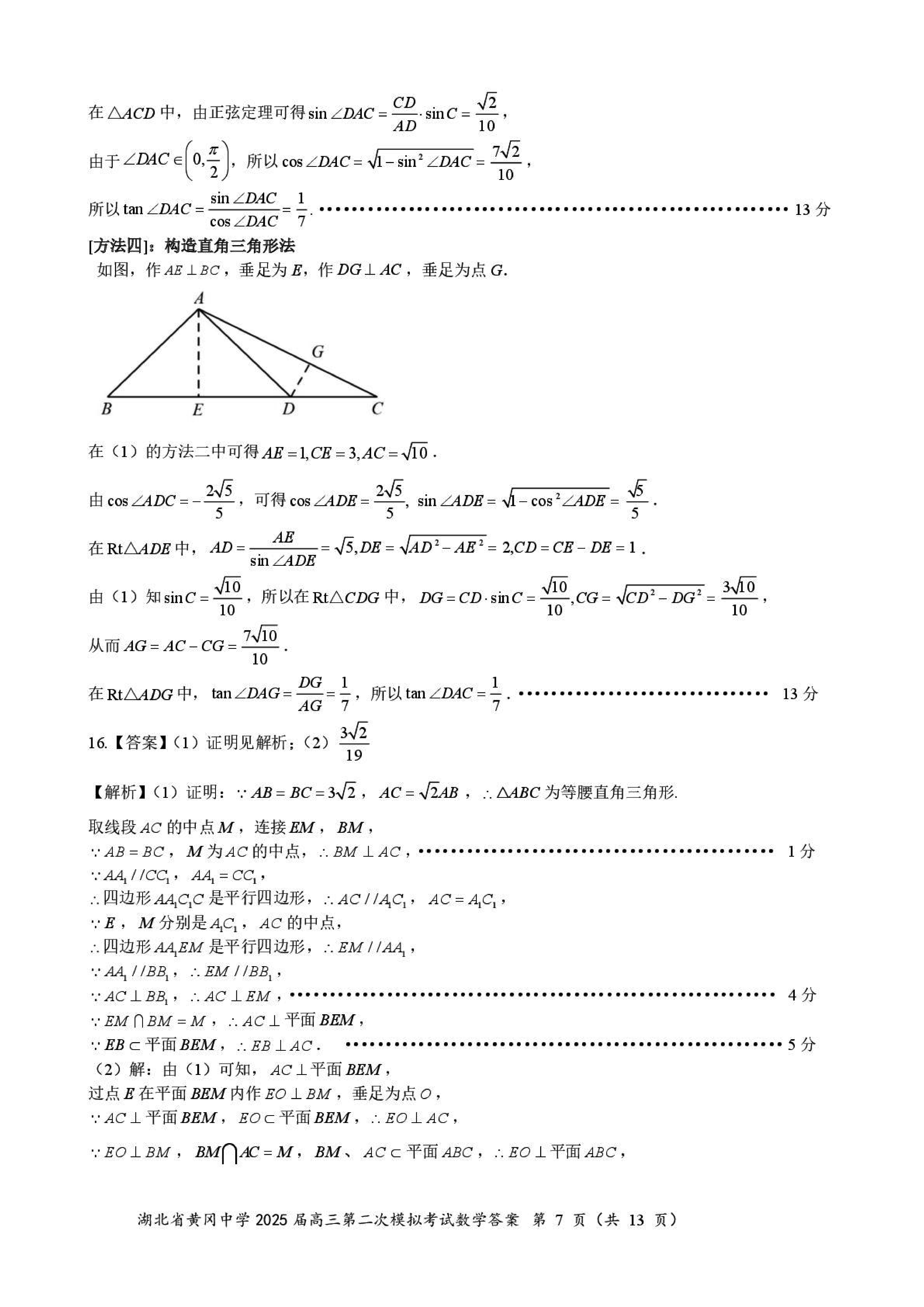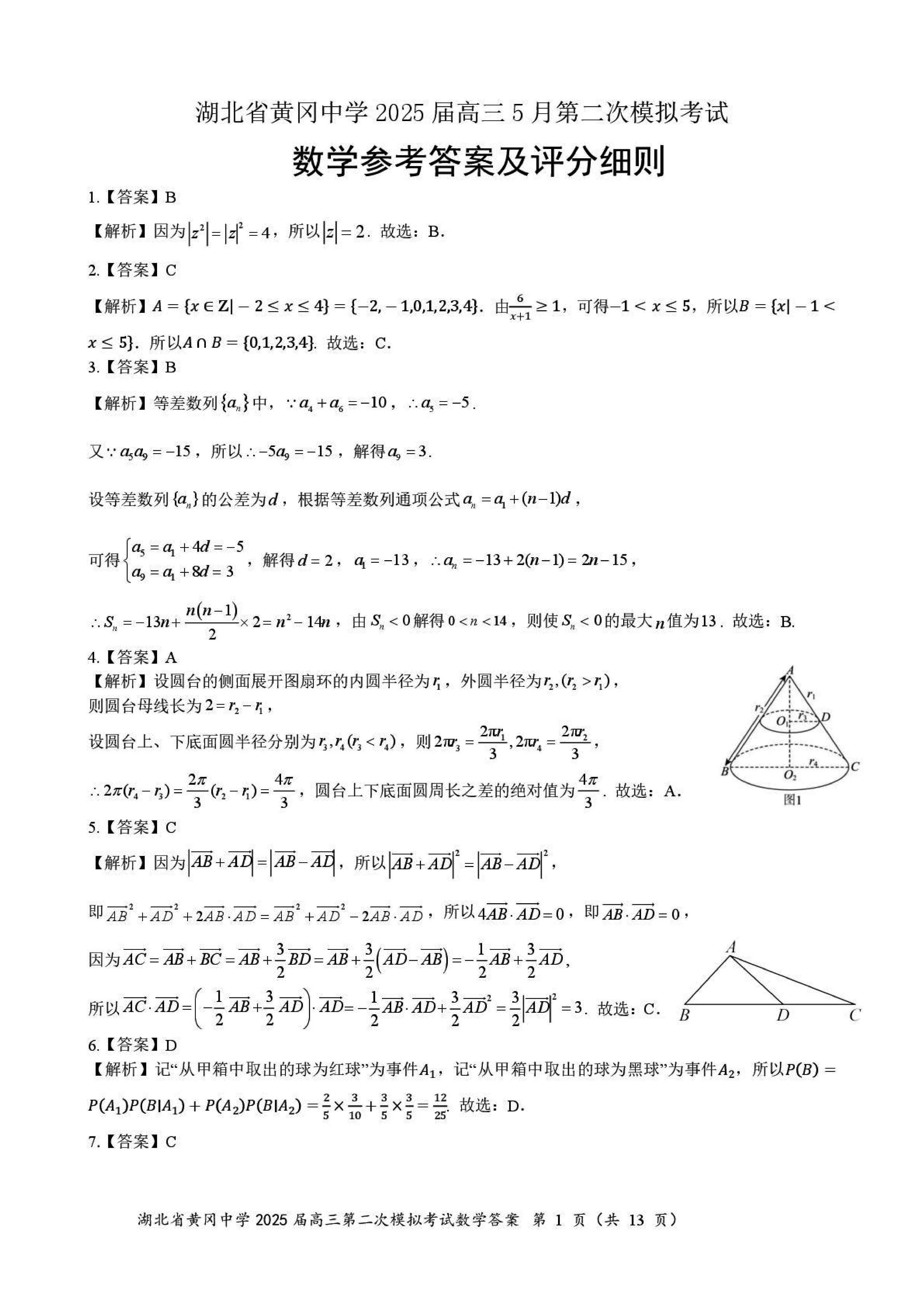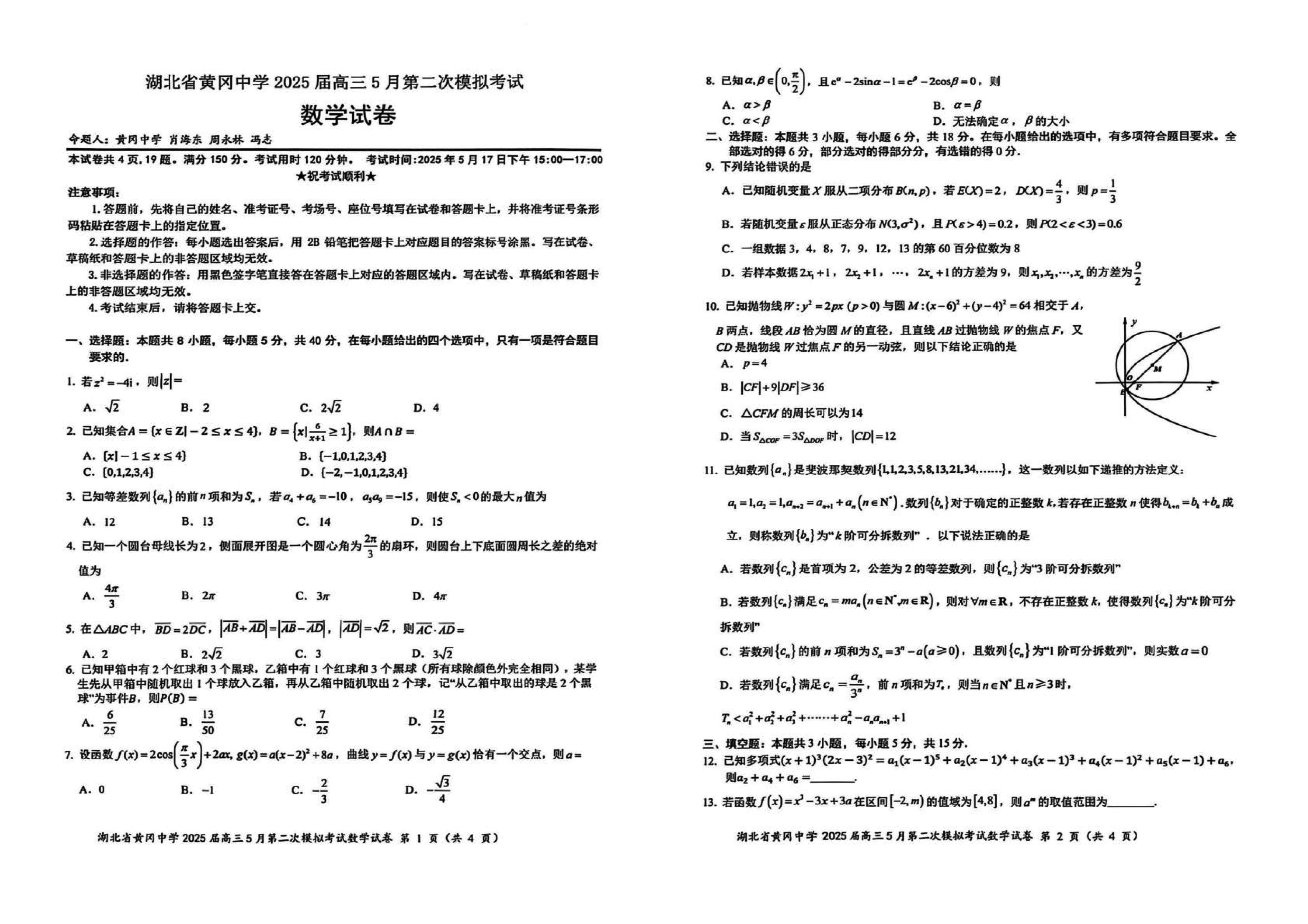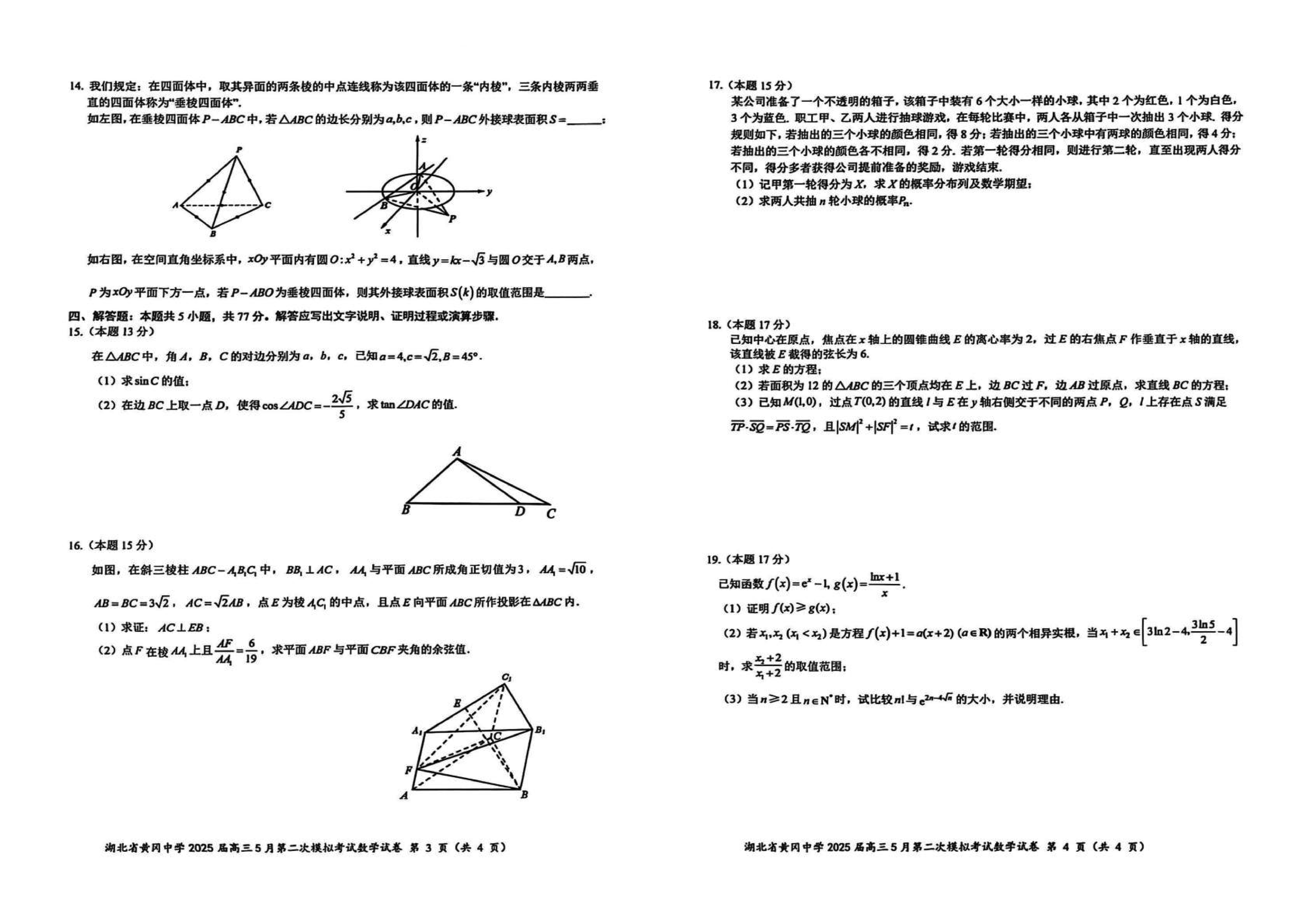 黄冈中学2025届高三5月第二次模拟预测数学试题及答案 时间:2025-05-18 湖北 数学试题 2025届湖北省黄冈中学高三下学期5月第二次模拟预测数学考试已于近日开考,为方便考生考后及时查看考试情况,查漏补缺、弥补不足,本文整理了试题答案解析相关信息! 汇总: 数学试题及答案解析