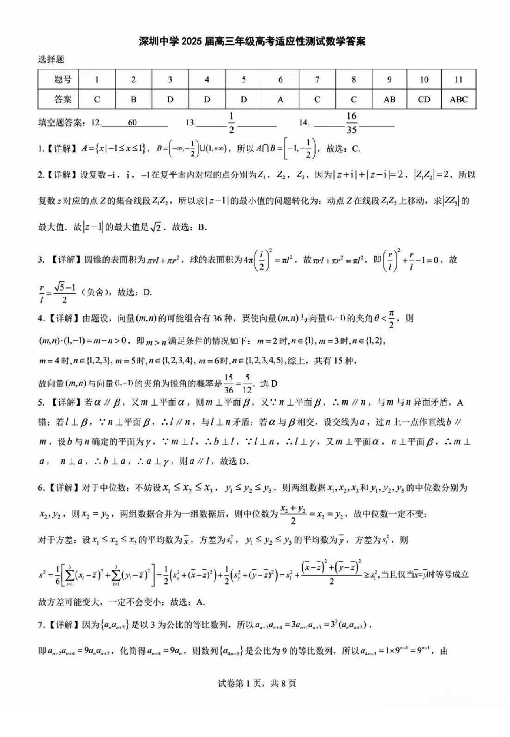 深圳中学2025届高三高考适应性测试数学试题及答案 时间:2025-05-18 广东 数学试题 深圳中学2025届高三高考适应性测试数学考试已于近日开考,为方便考生考后及时查看考试情况,查漏补缺、弥补不足,本文整理了试题答案解析相关信息! 汇总: 数学试题及答案解析
