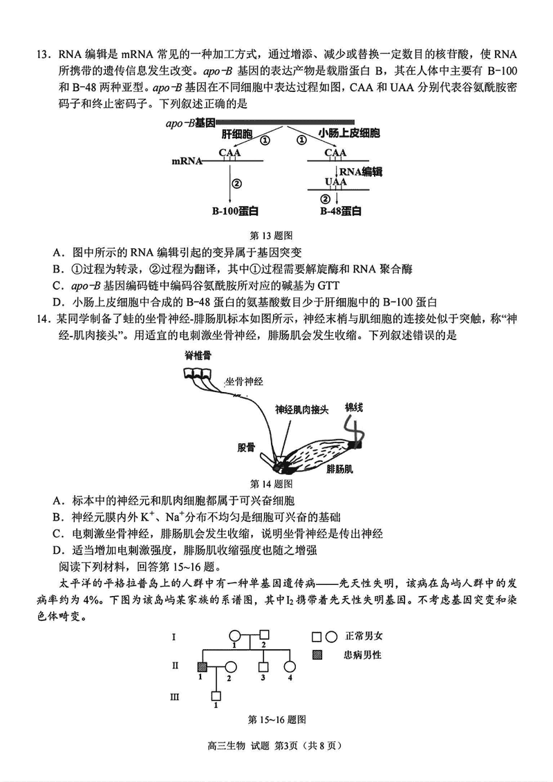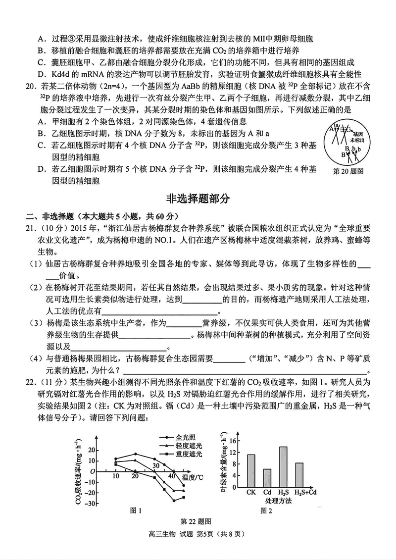 浙江精诚联盟2025高三5月适应性联考生物试题及答案
