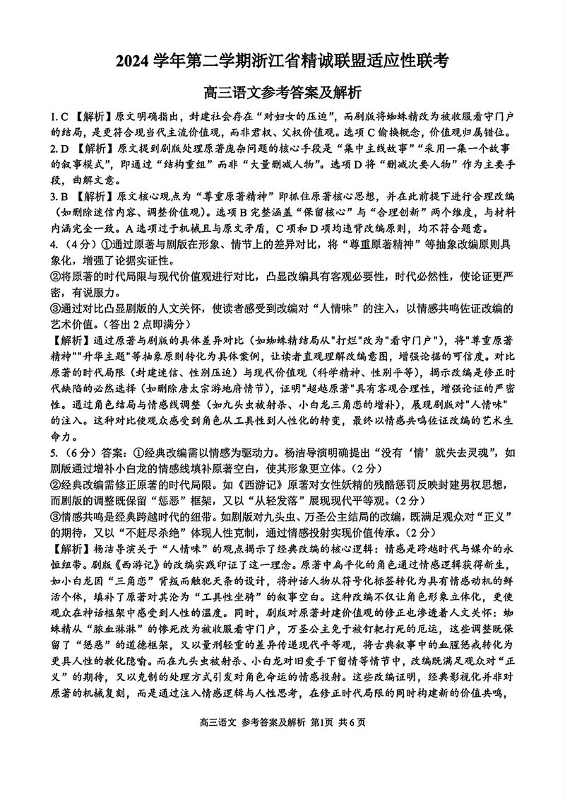 浙江精诚联盟2025高三5月适应性联考语文试题及答案