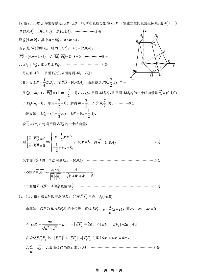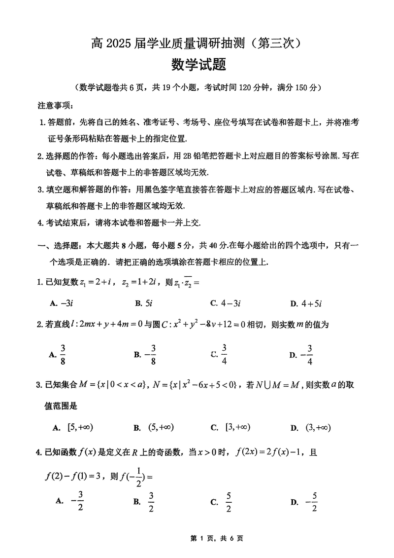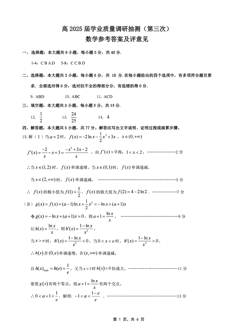 重庆市高2025届学业质量调研抽测(第三次)数学试题及答案