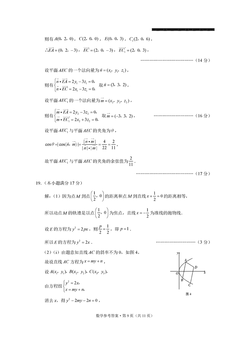 云南师大附中2025届高考适应性月考卷九数学试题及答案