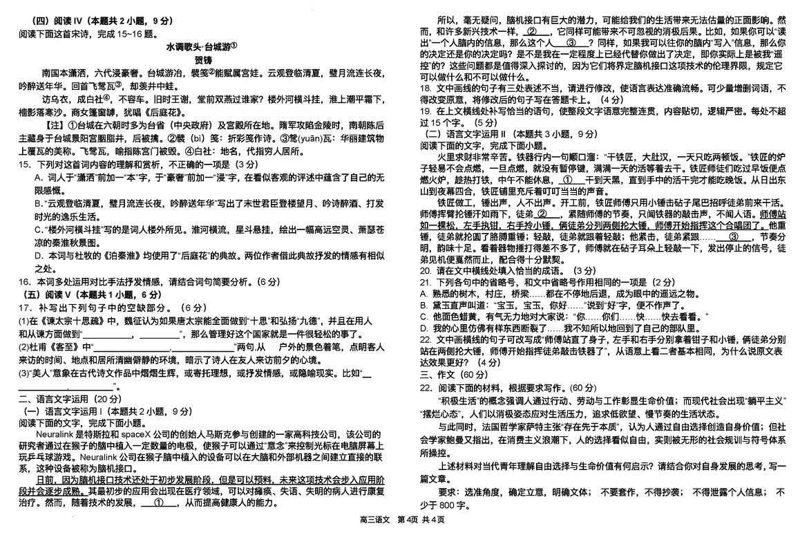 湖南雅礼中学2025届高三下学期冲刺训练语文试题及答案