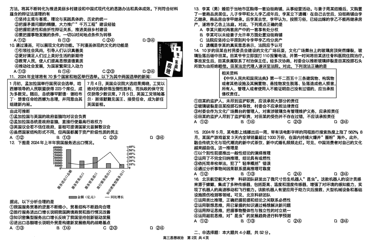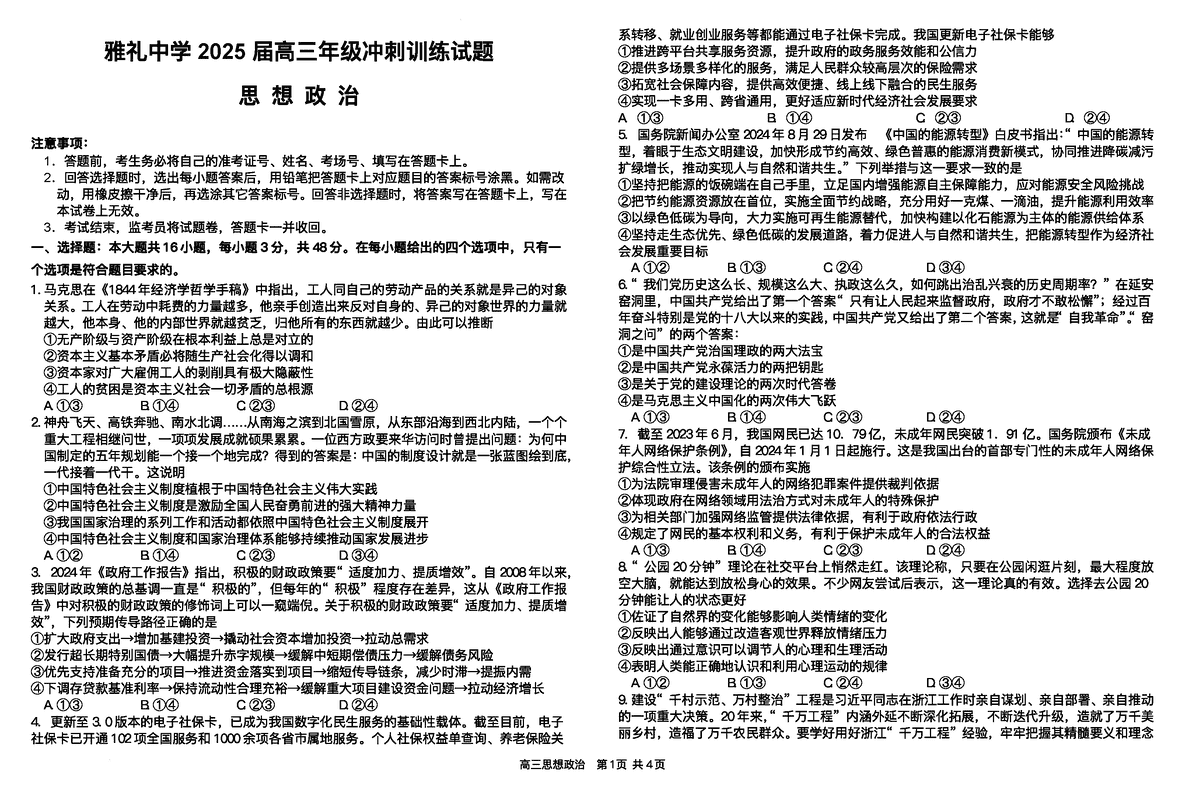 湖南雅礼中学2025届高三下学期冲刺训练政治试题及答案