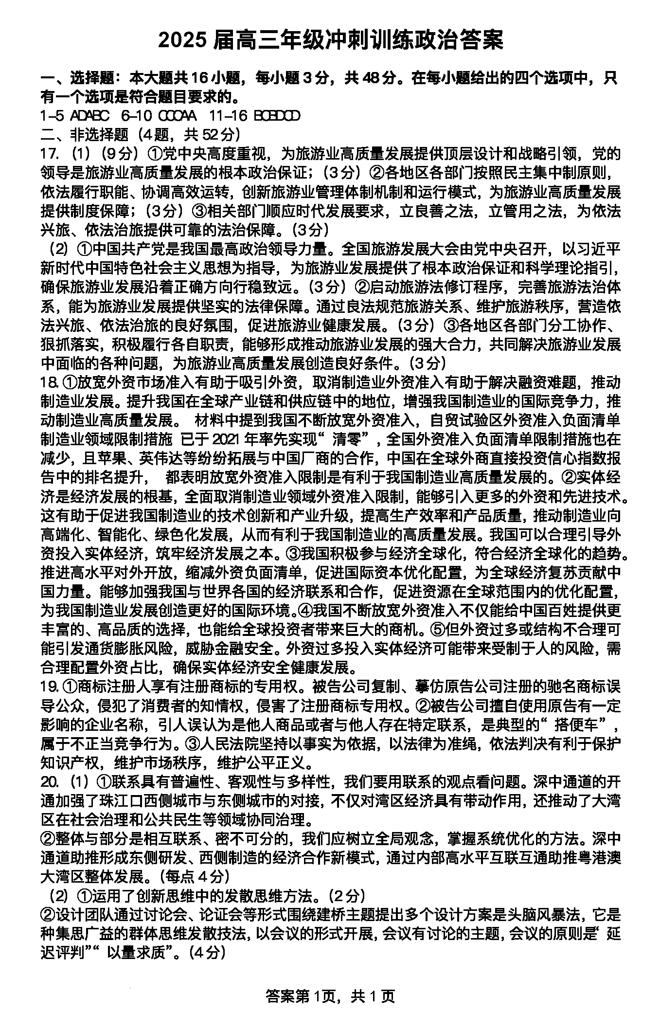 政治试题及答案解析