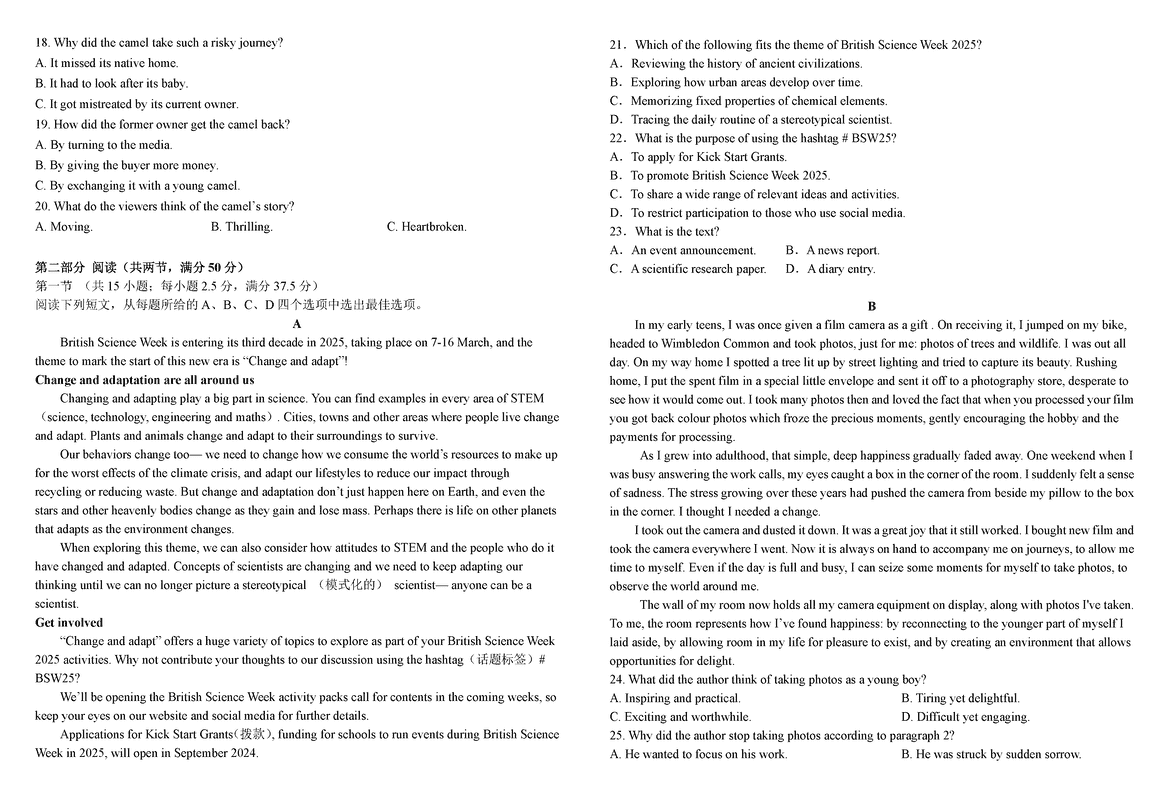 湖南 英语试题