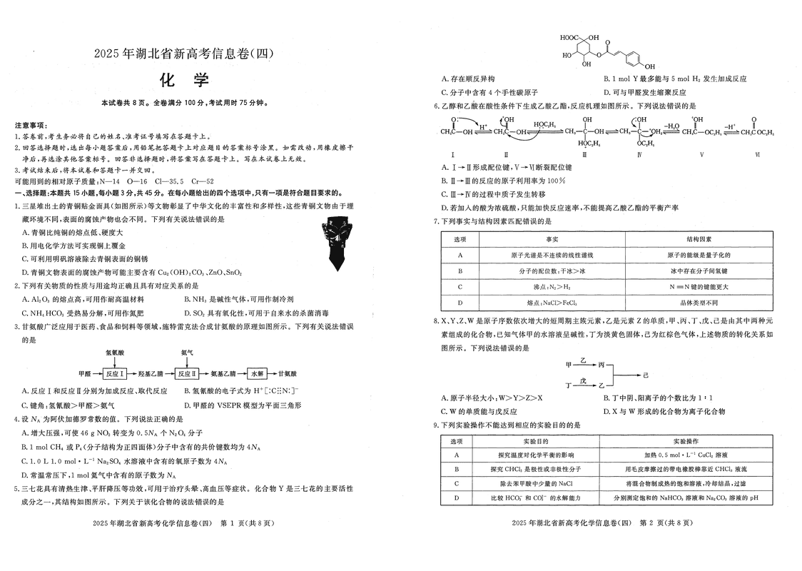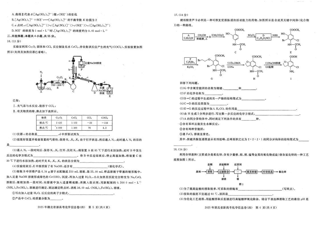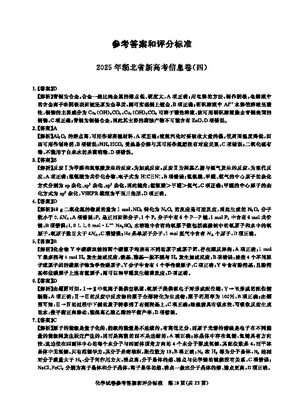 2025年湖北省新高考信息卷四化学试题及答案 时间:2025-05-19 湖北 理综试题 2025年湖北省新高考信息卷四化学考试已于近日开考,为方便考生考后及时查看考试情况,查漏补缺、弥补不足,本文整理了试题答案解析相关信息! 汇总:2025年湖北省新高考信息卷(四)试题及答案汇总 化学试题及答案解析