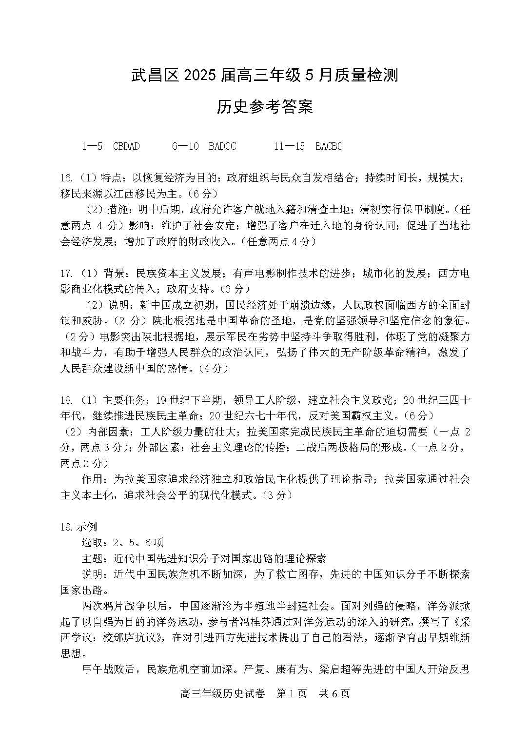 武汉武昌区2025届高三5月质量检测历史试题及答案 时间:2025-05-19 湖北 文综试题 湖北省武昌区2025届高三5月质量检测历史考试已于近日开考,为方便考生考后及时查看考试情况,查漏补缺、弥补不足,本文整理了试题答案解析相关信息! 汇总:湖北省武昌区2025届高三5月质量检测试题及答案汇总 历史试题及答案解析
