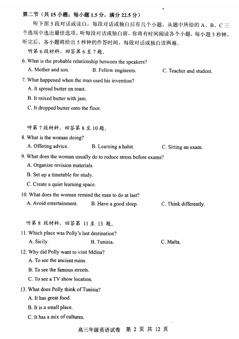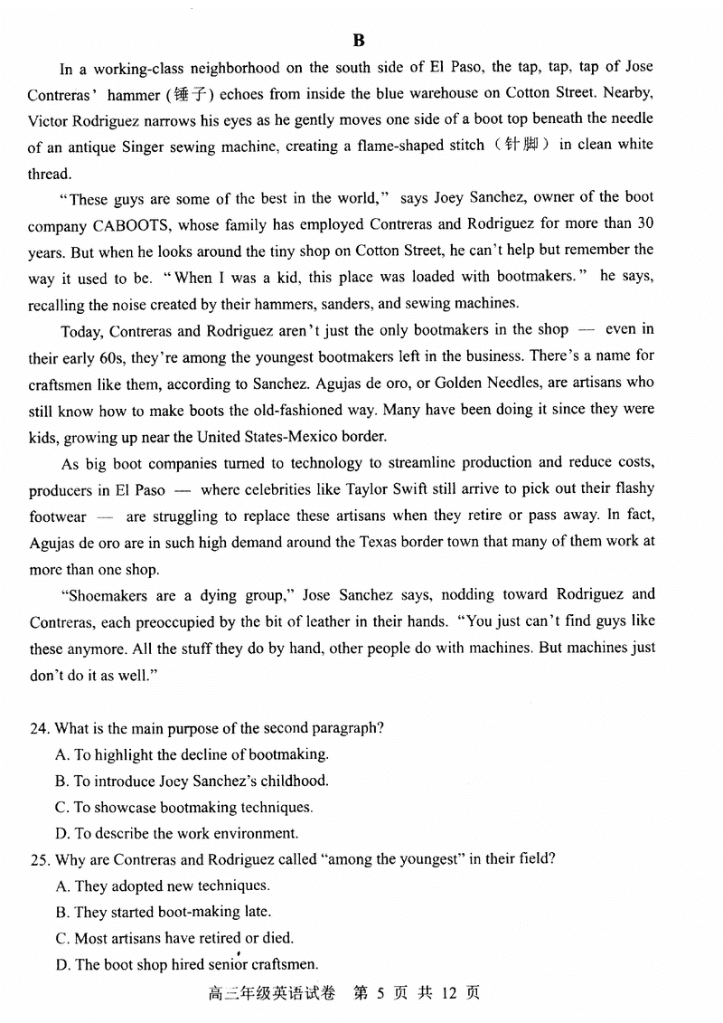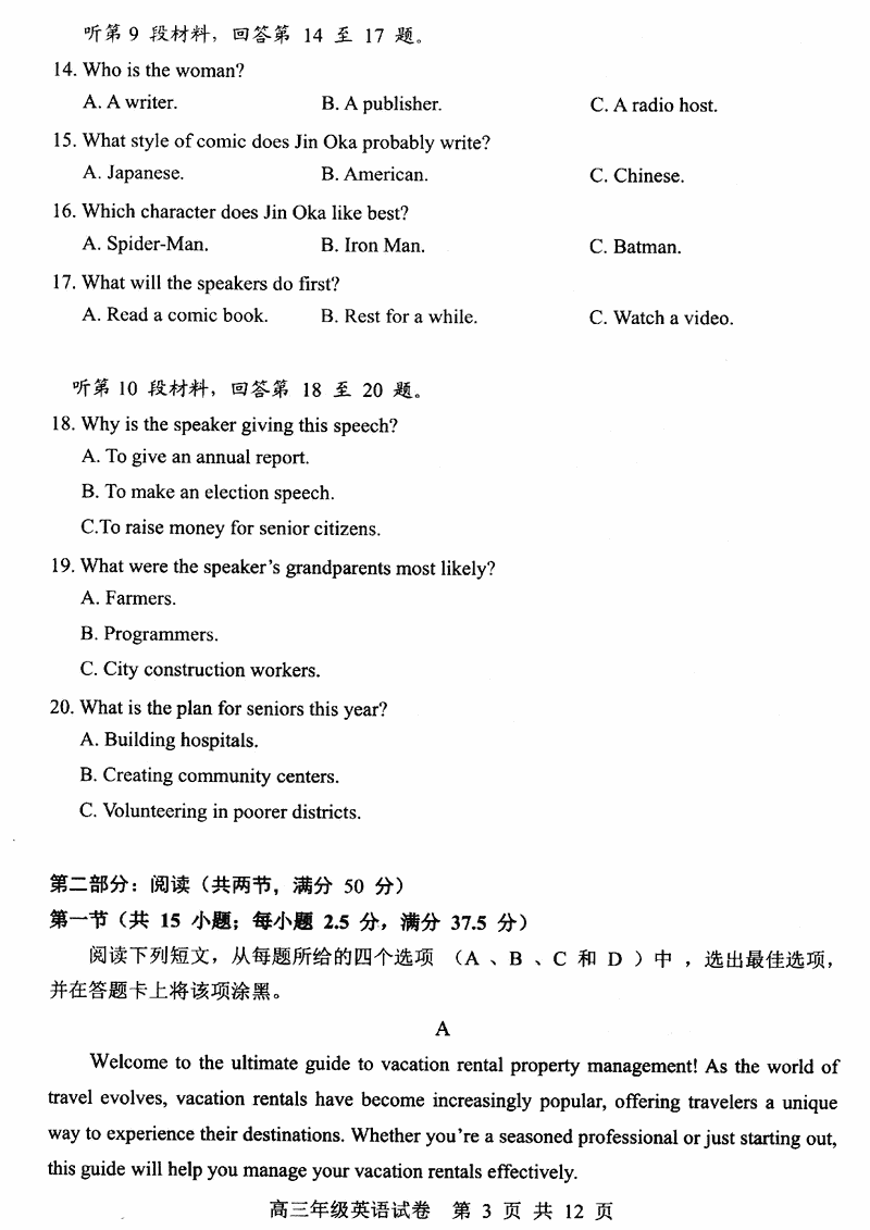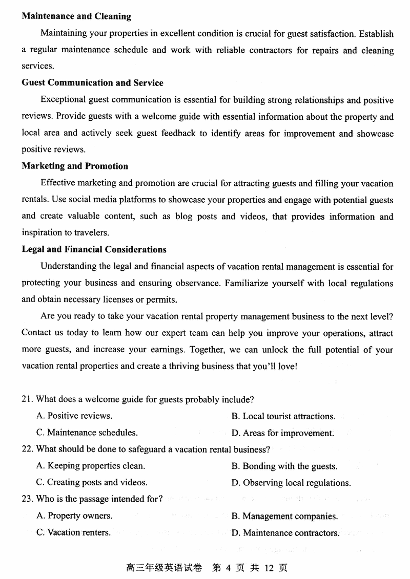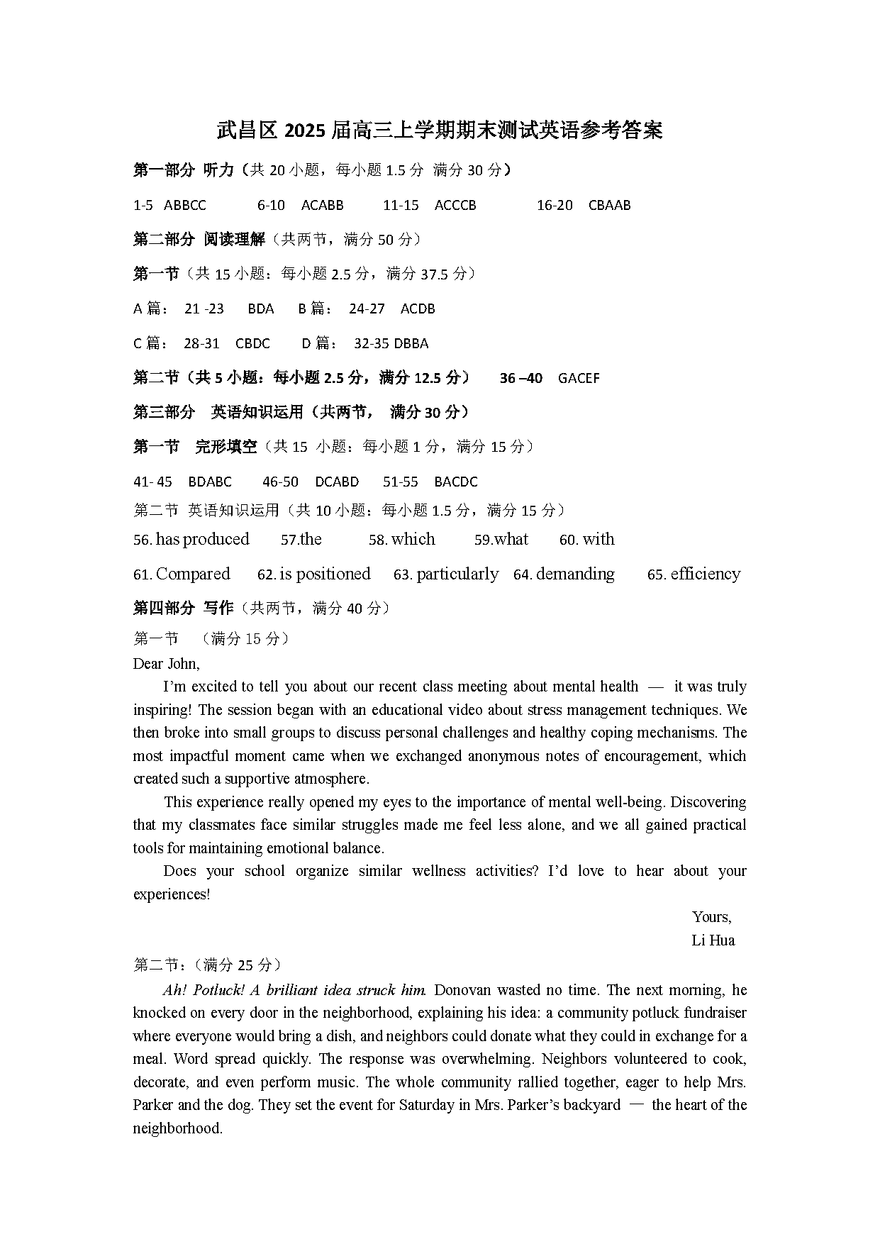 武汉武昌区2025届高三5月质量检测英语试题及答案 时间:2025-05-19 湖北 英语试题 湖北省武昌区2025届高三5月质量检测英语考试已于近日开考,为方便考生考后及时查看考试情况,查漏补缺、弥补不足,本文整理了试题答案解析相关信息! 汇总:湖北省武昌区2025届高三5月质量检测试题及答案汇总 英语试题及答案解析