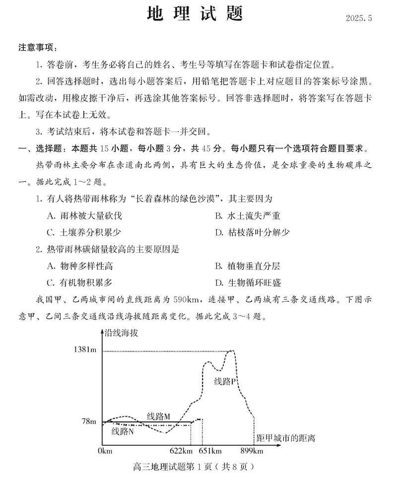 潍坊三模2025届高三下学期高考模拟地理试题及答案 时间:2025-05-19 山东 文综试题 山东潍坊三模2025届高三下学期高考模拟地理考试已于近日开考,为方便考生考后及时查看考试情况,查漏补缺、弥补不足,本文整理了试题答案解析相关信息! 汇总:山东潍坊2025届高三下学期三模试题及答案汇总 地理试题及答案解析