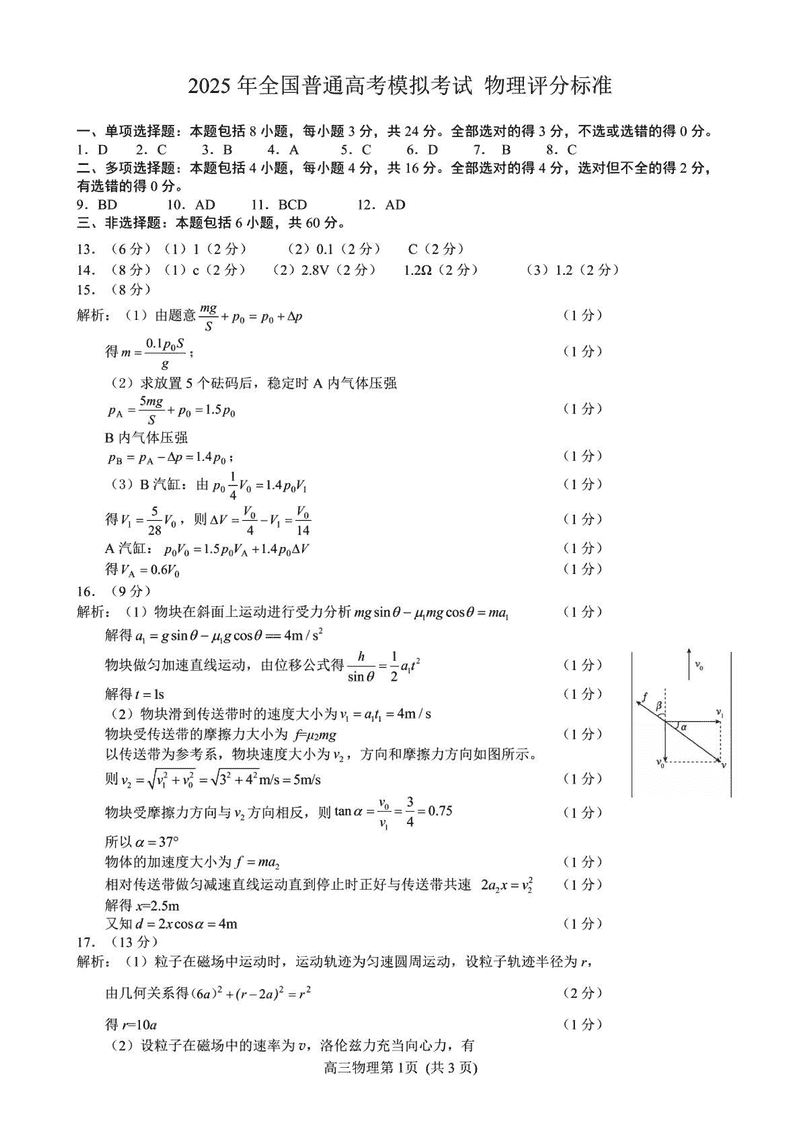 潍坊三模2025届高三下学期高考模拟物理试题及答案 时间:2025-05-19 山东 理综试题 山东潍坊三模2025届高三下学期高考模拟物理考试已于近日开考,为方便考生考后及时查看考试情况,查漏补缺、弥补不足,本文整理了试题答案解析相关信息! 汇总:山东潍坊2025届高三下学期三模试题及答案汇总 物理试题及答案解析