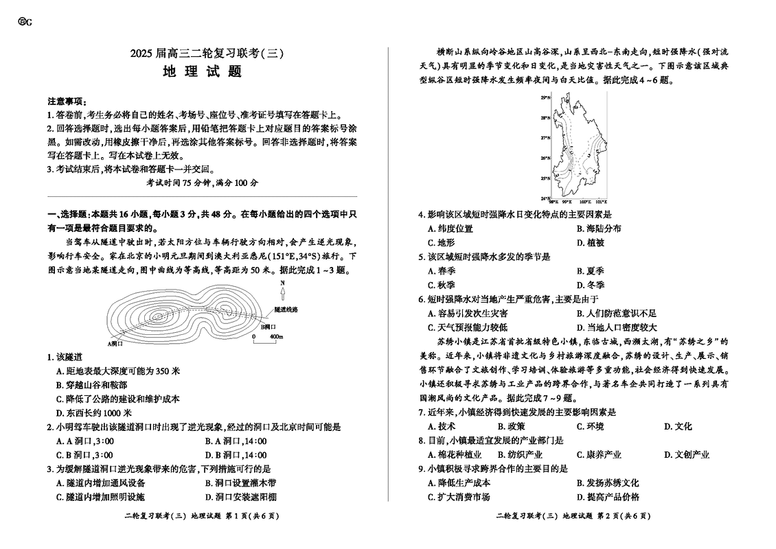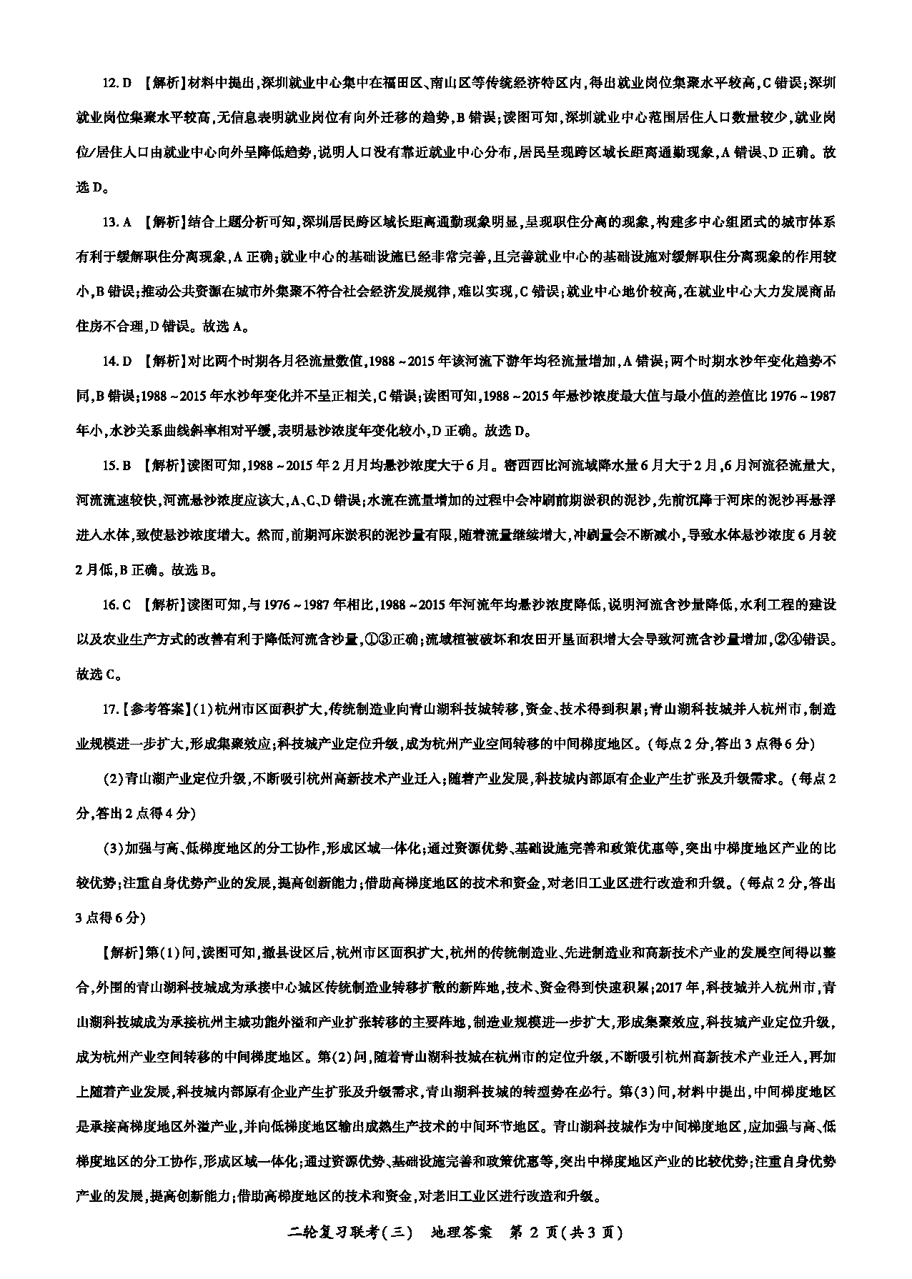 安徽百师联盟2025届高三二轮复习联考(三)地理试题及答案