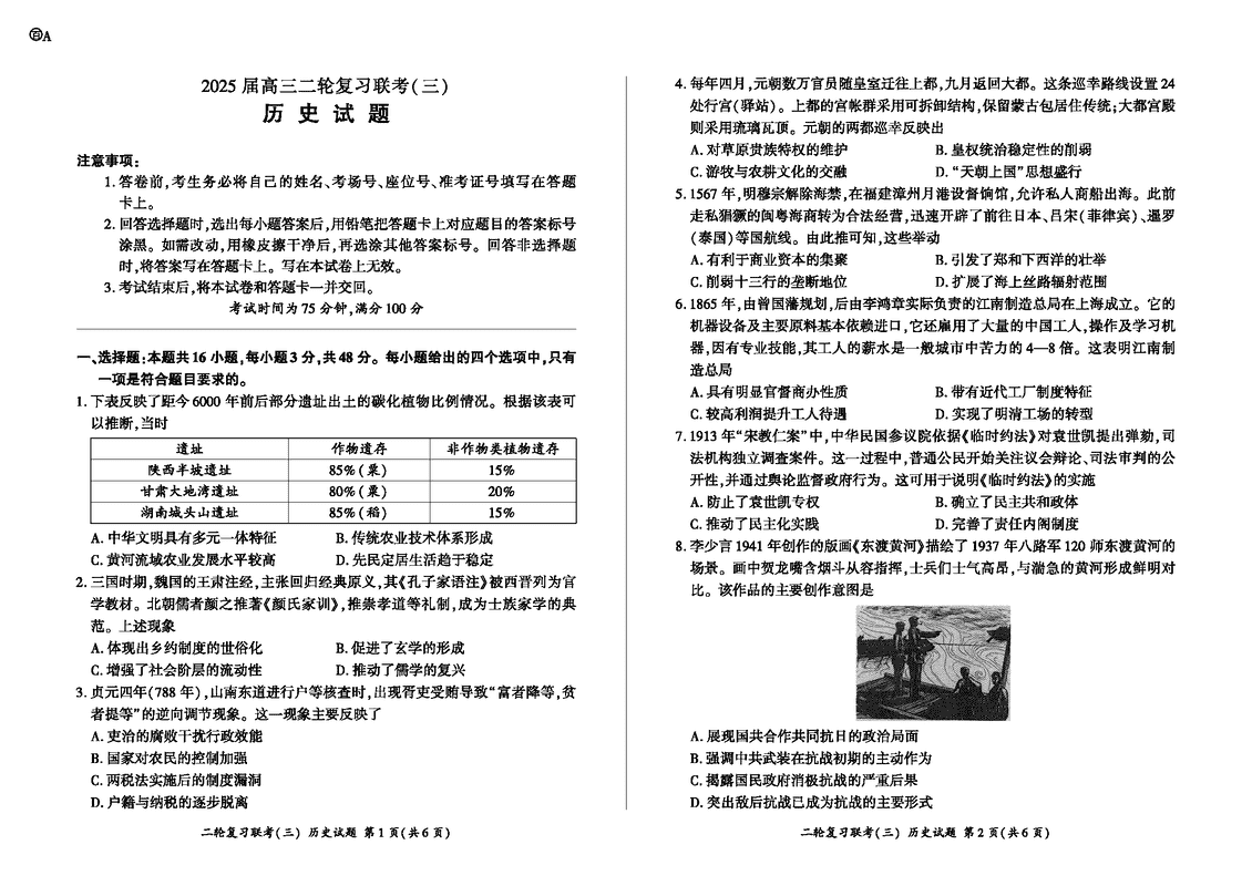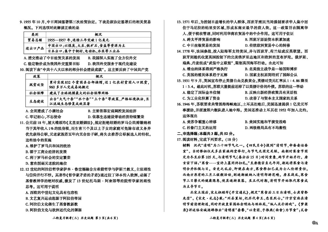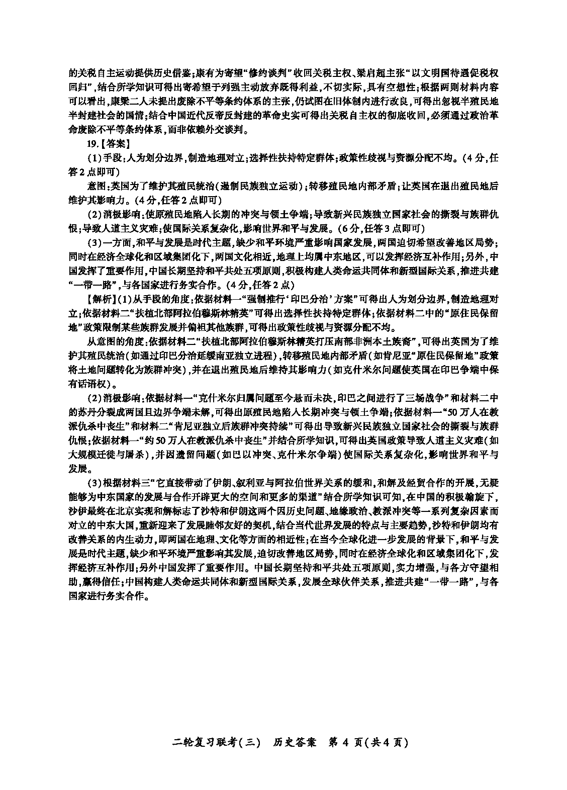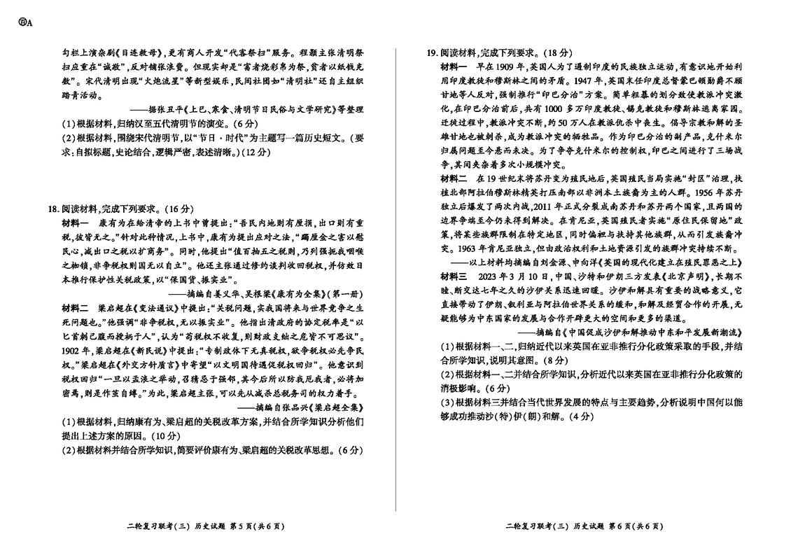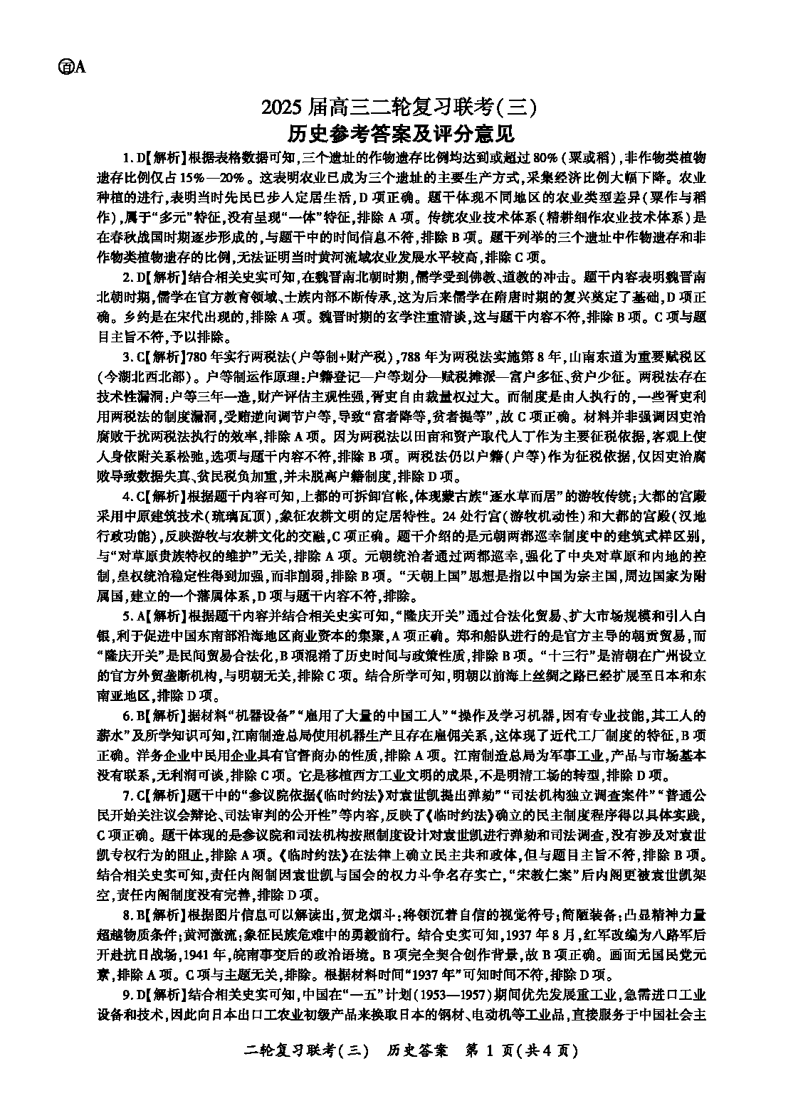 安徽百师联盟2025届高三二轮复习联考(三)历史试题及答案