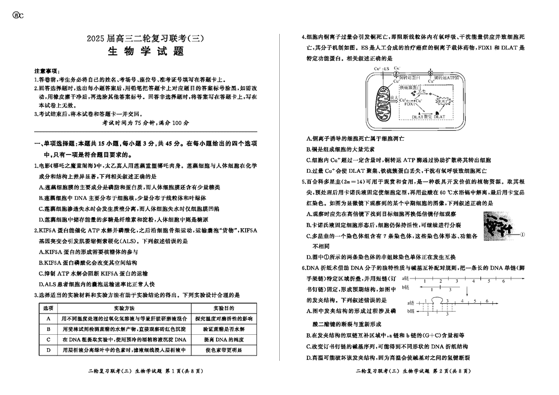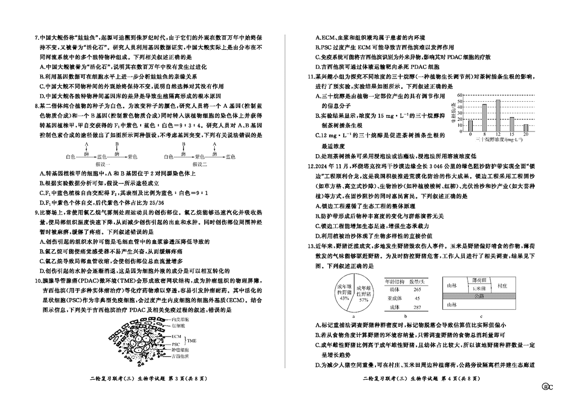 安徽百师联盟2025届高三二轮复习联考(三)生物试题及答案