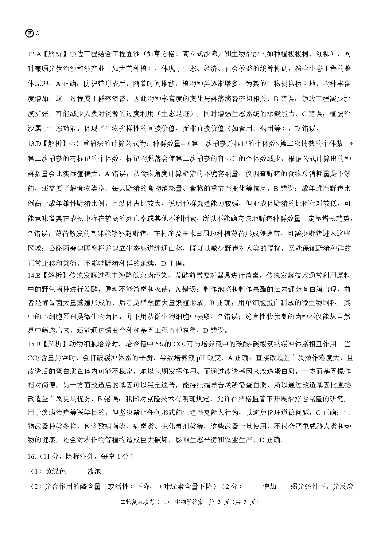 安徽省百师联盟2025届高三二轮复习联考(三)生物考试已于近日开考,为方便考生考后及时查看考试情况,查漏补缺、弥补不足,本文整理了试题答案解析相关信息!