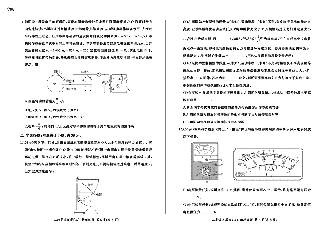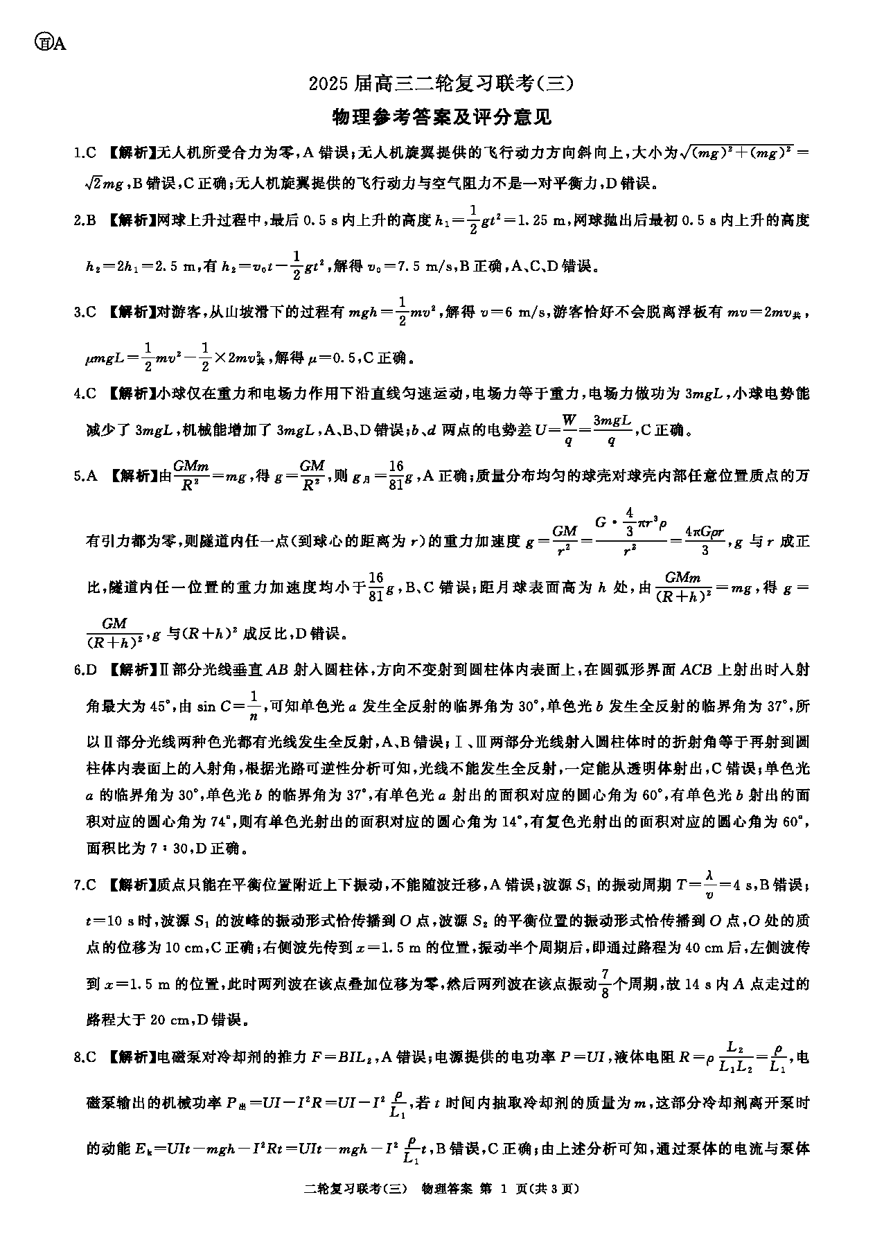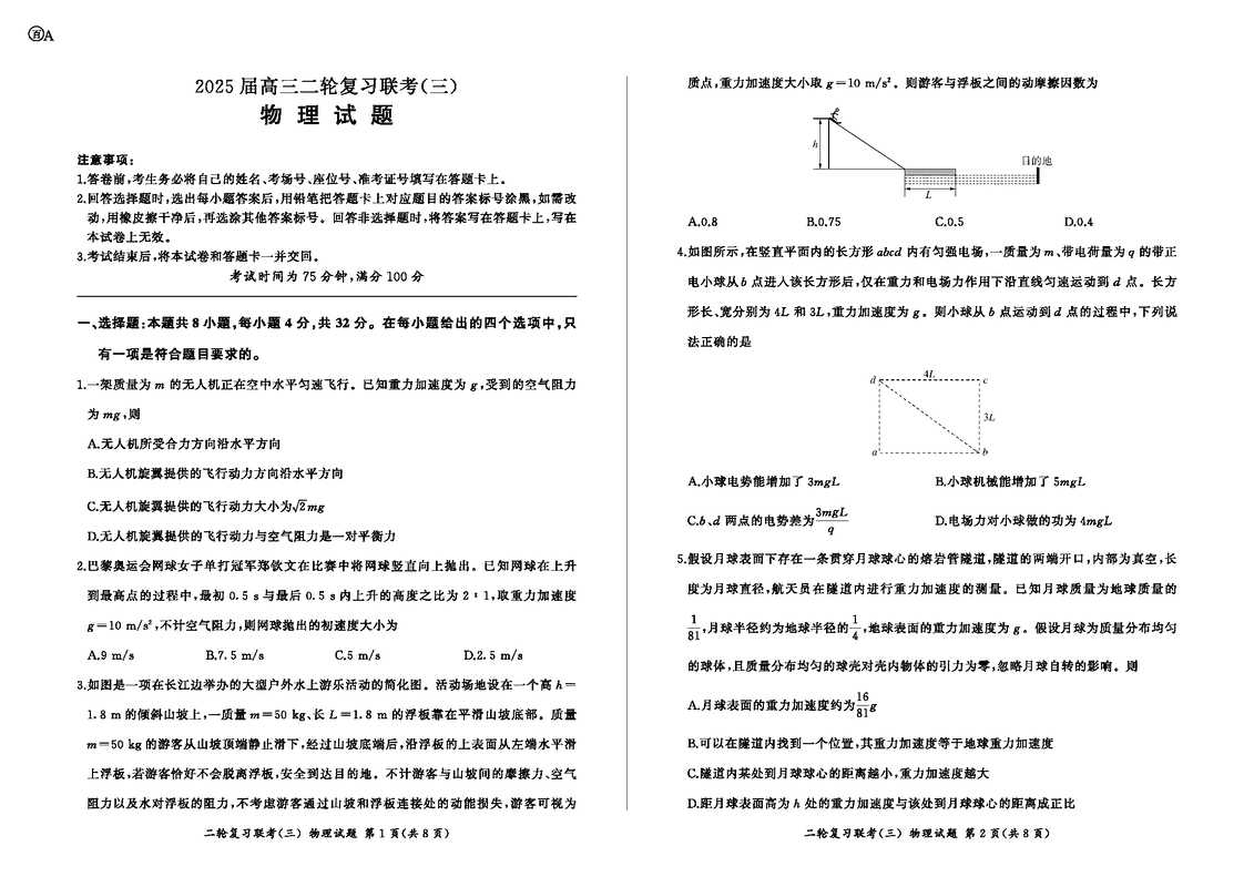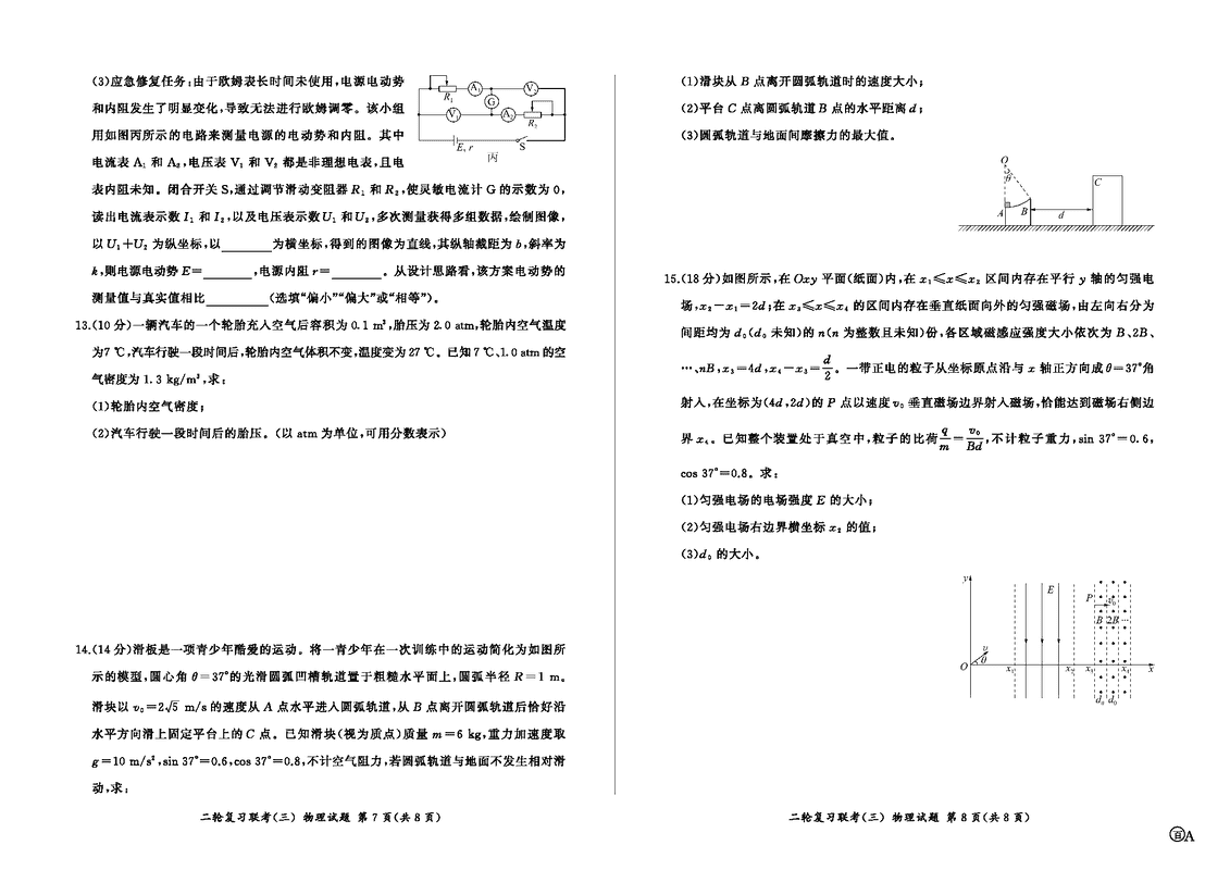 安徽百师联盟2025届高三二轮复习联考(三)物理试题及答案