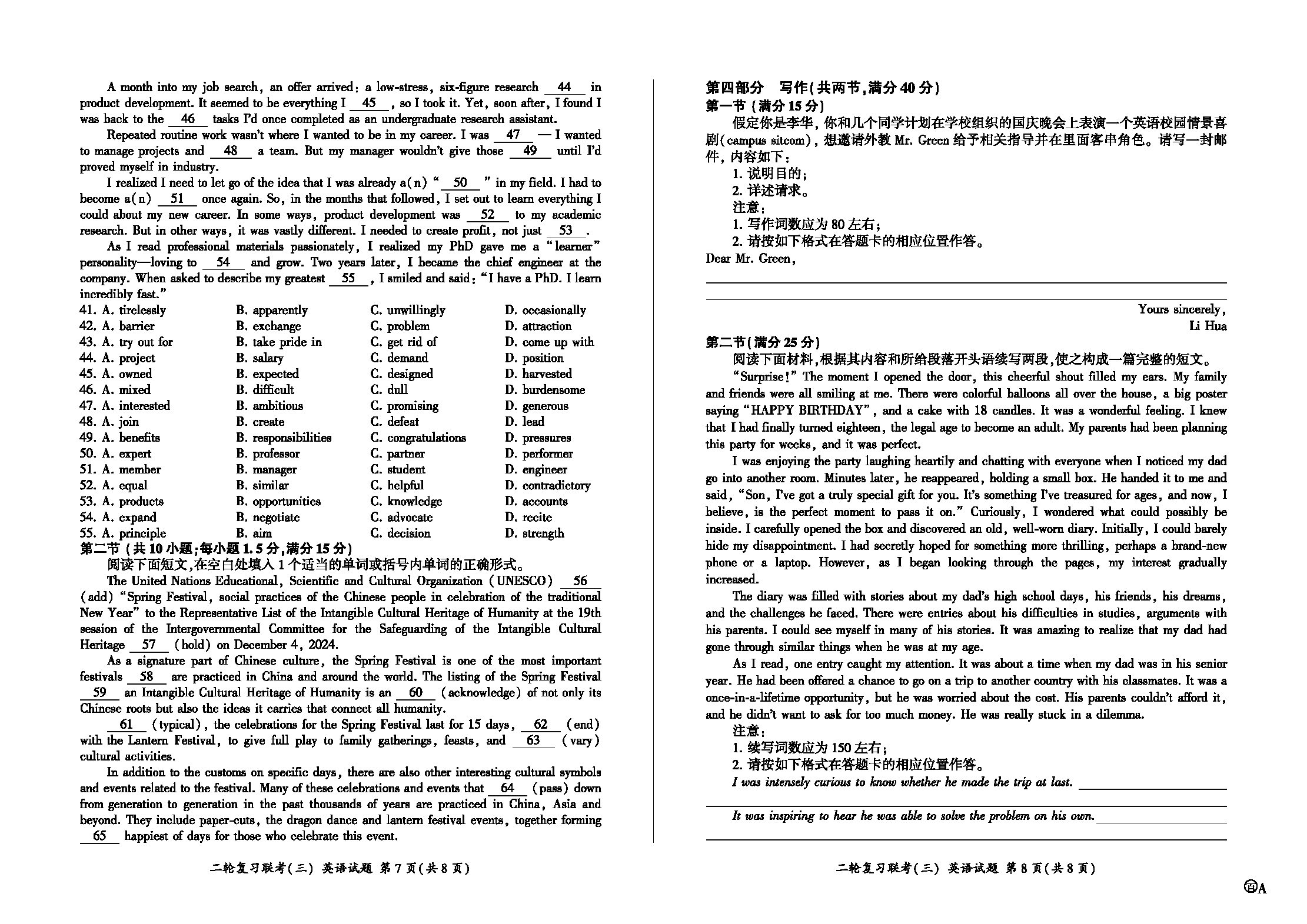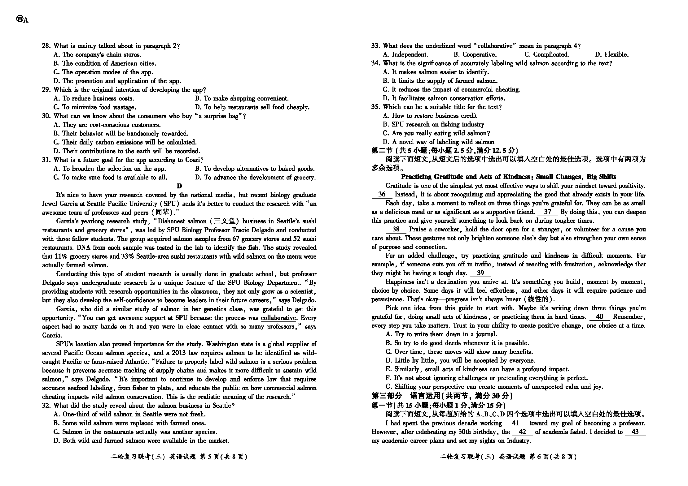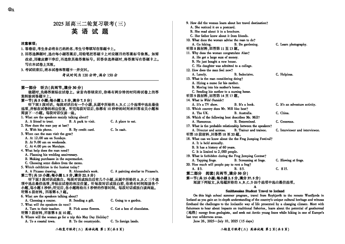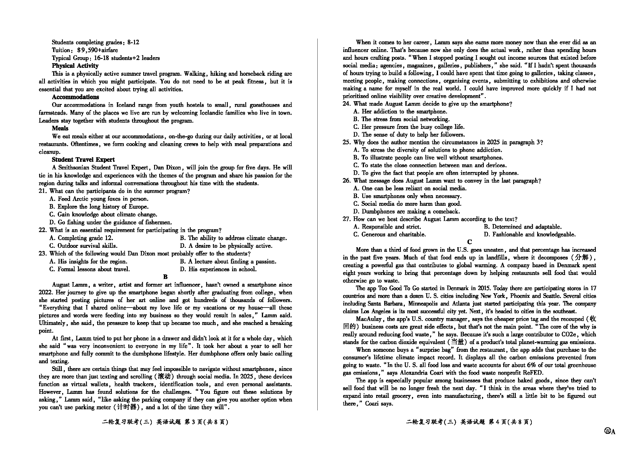 安徽百师联盟2025届高三二轮复习联考(三)英语试题及答案