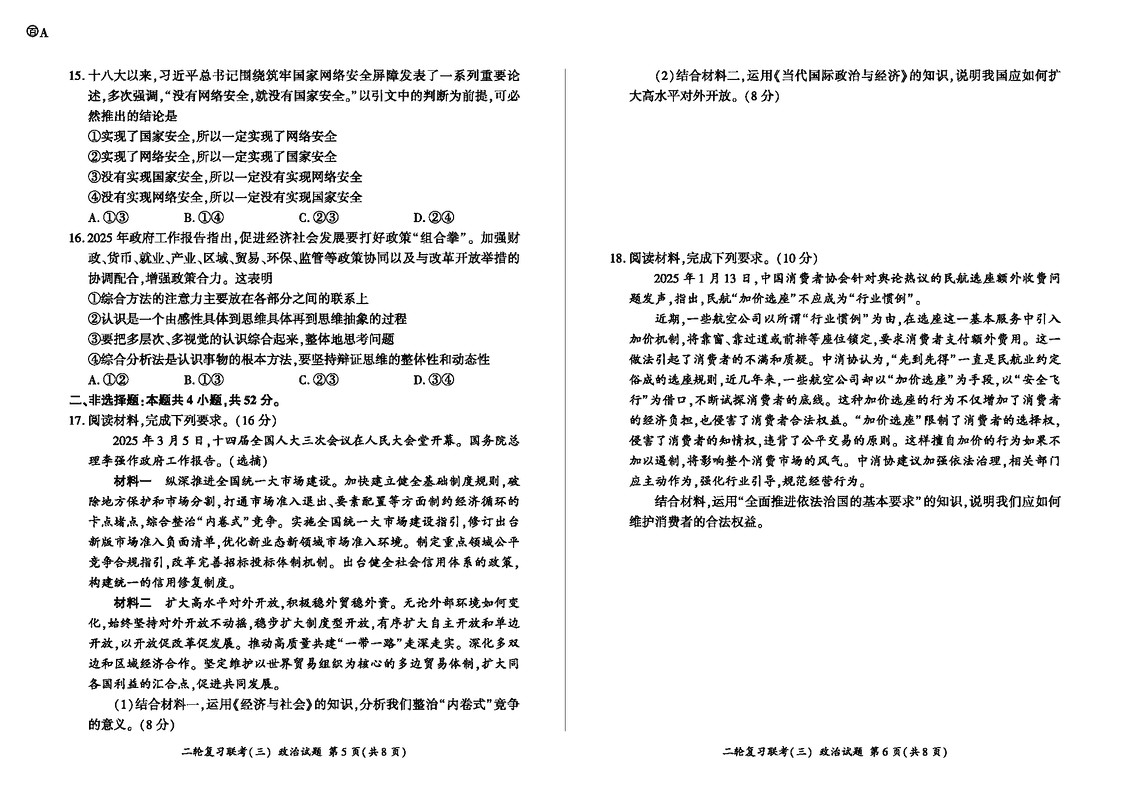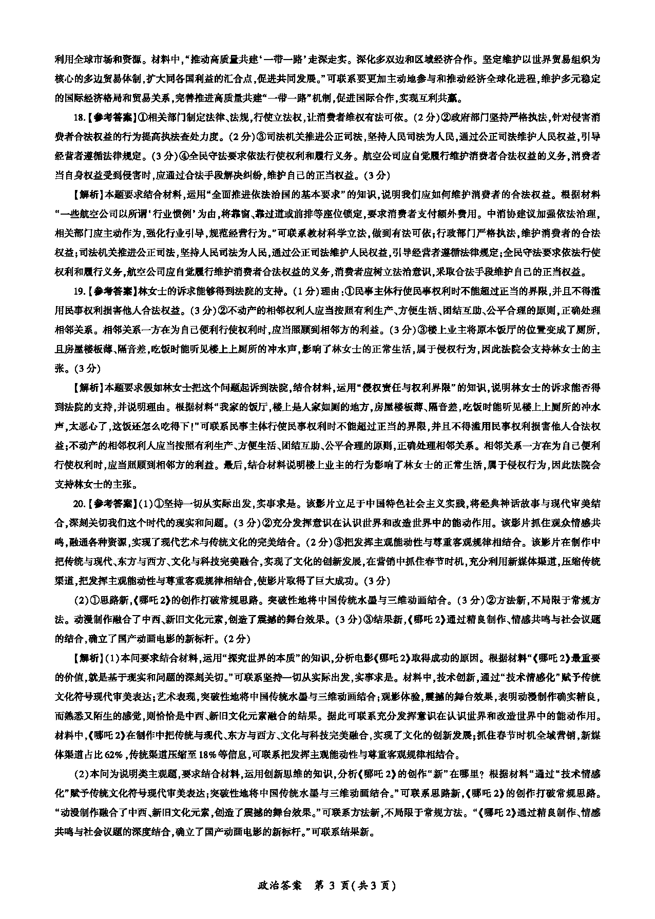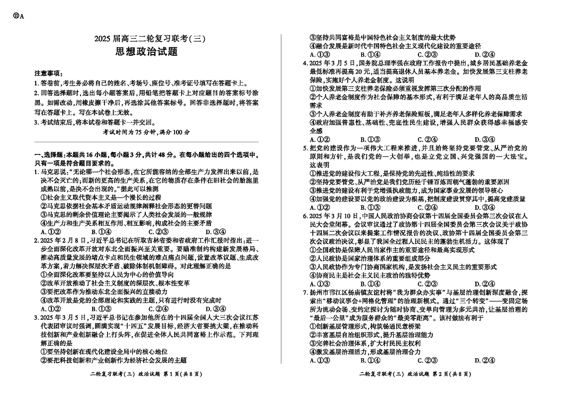 安徽百师联盟2025届高三二轮复习联考(三)政治试题及答案
