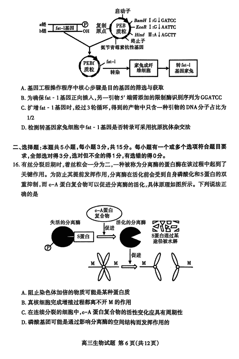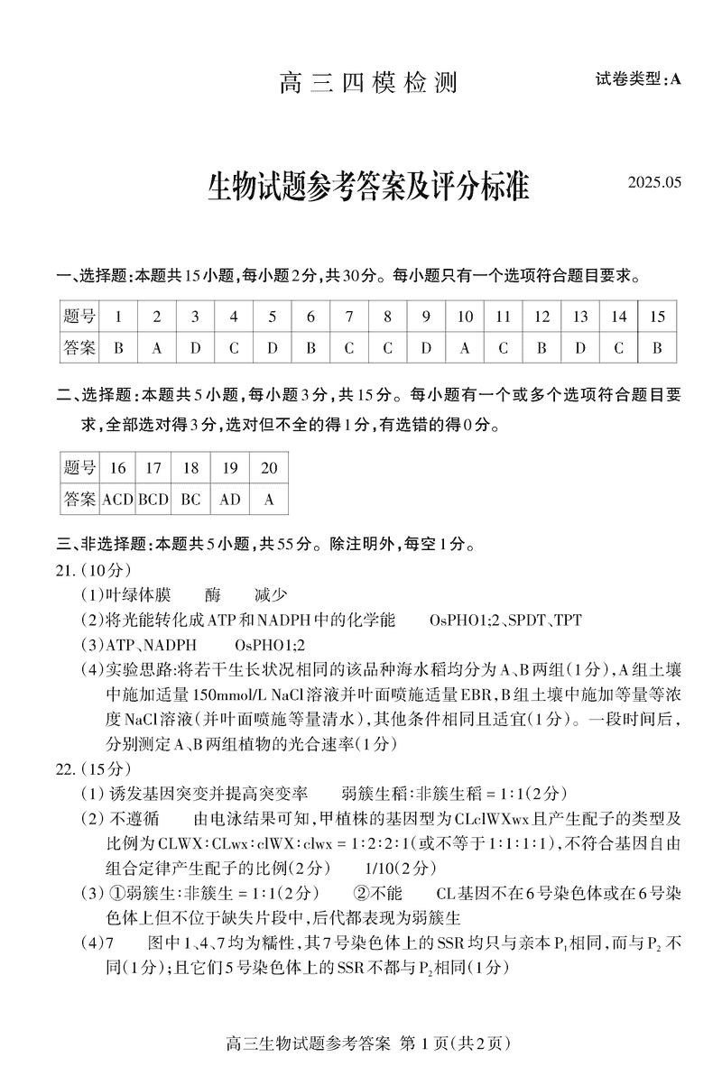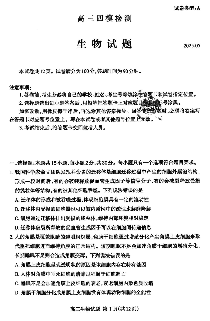 2025届山东泰安高三四模生物试题及答案 时间:2025-05-20 山东 理综试题 2025届山东省泰安高三四模生物考试已于近日开考,为方便考生考后及时查看考试情况,查漏补缺、弥补不足,本文整理了试题答案解析相关信息! 汇总:2025届山东省泰安高三四模检测试题及答案汇总 生物试题及答案解析