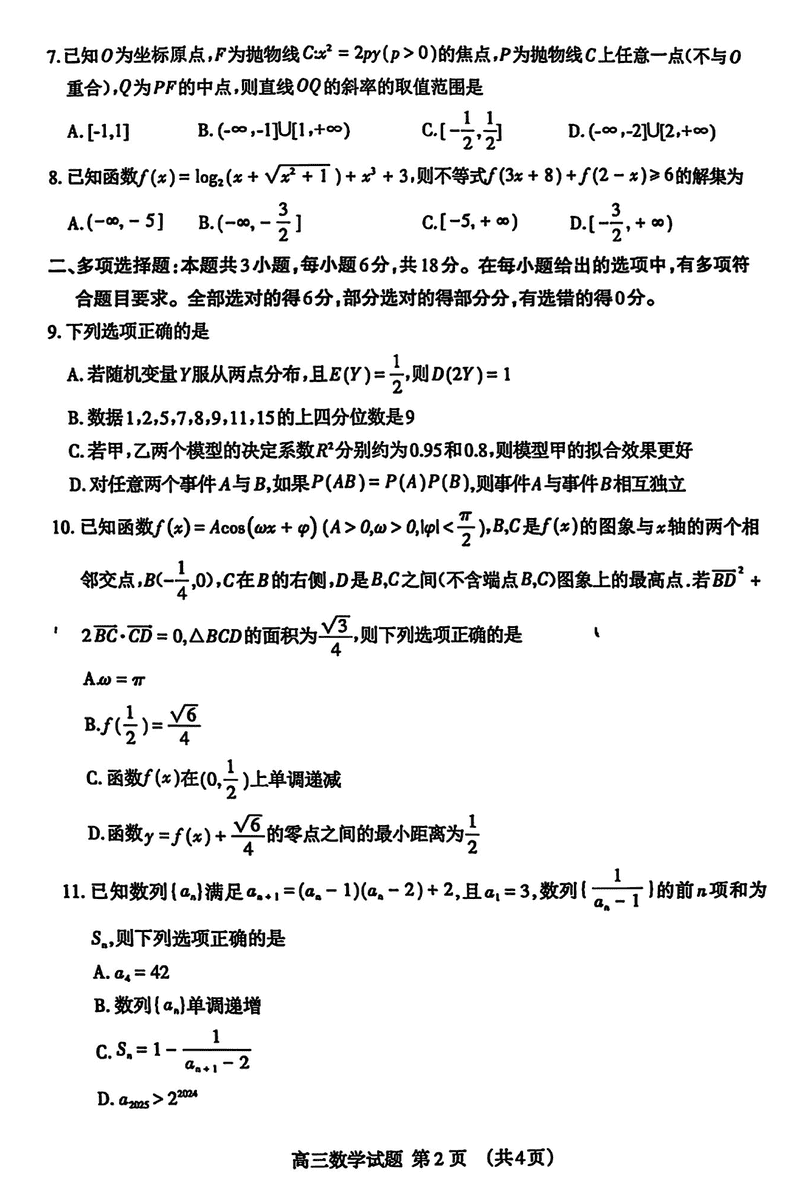 2025届山东泰安高三四模数学试题及答案 时间:2025-05-20 山东 数学试题 2025届山东省泰安高三四模数学考试已于近日开考,为方便考生考后及时查看考试情况,查漏补缺、弥补不足,本文整理了试题答案解析相关信息! 汇总:2025届山东省泰安高三四模检测试题及答案汇总 数学试题及答案解析