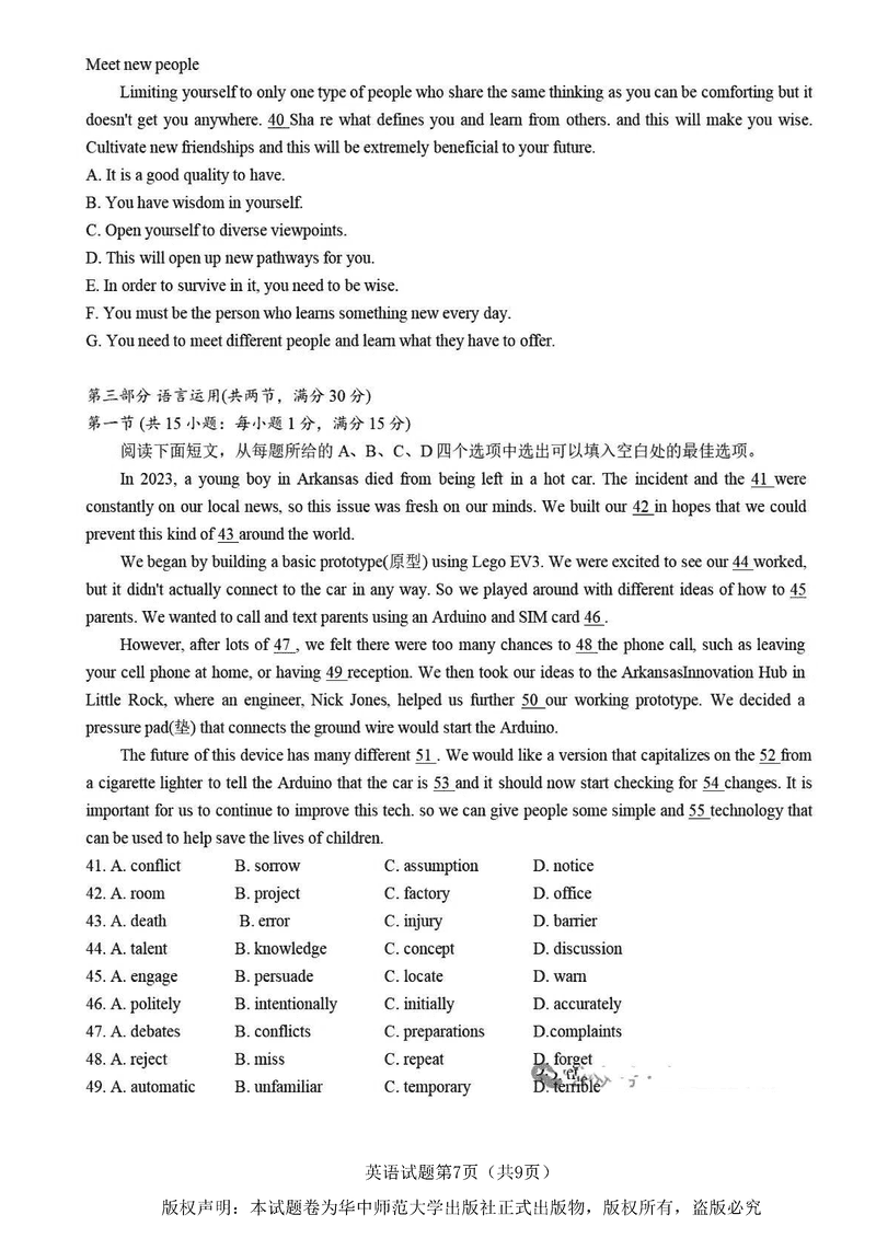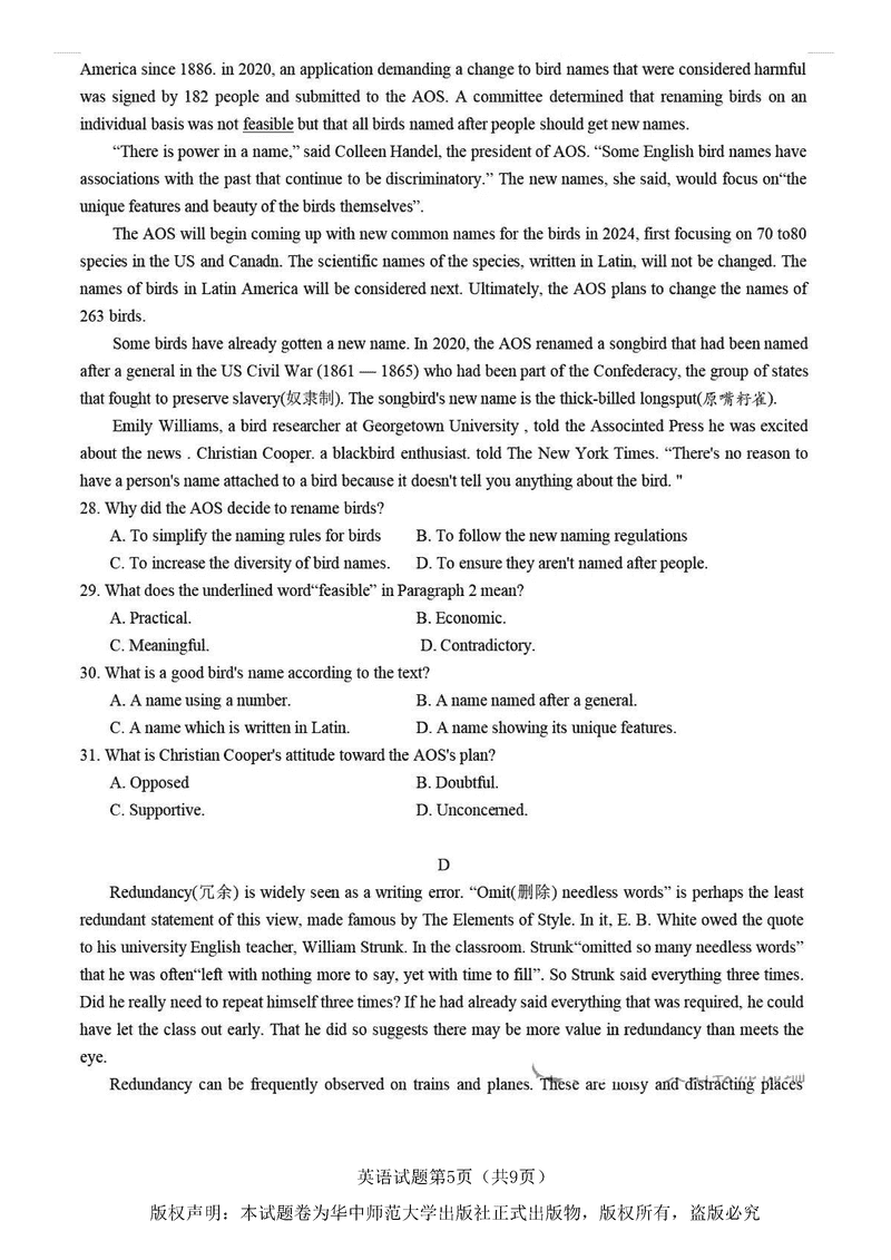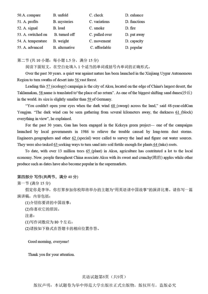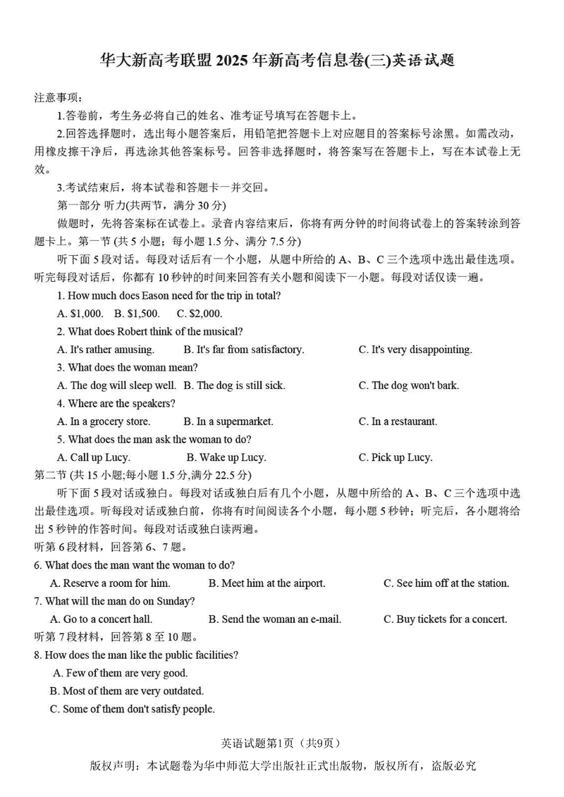 华大新高考联盟2025年名校高考预测卷英语试题及答案 时间:2025-05-20 英语试题 华大新高考联盟2025年名校高考预测卷英语考试已于近日开考,为方便考生考后及时查看考试情况,查漏补缺、弥补不足,本文整理了试题答案解析相关信息! 汇总:华大新高考联盟2025年名校高考预测卷试题及答案汇总 英语试题及答案解析