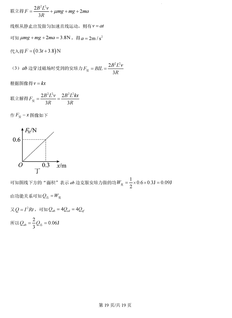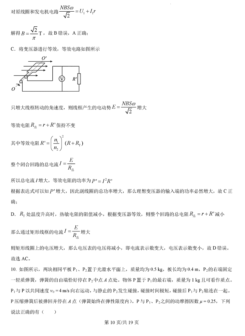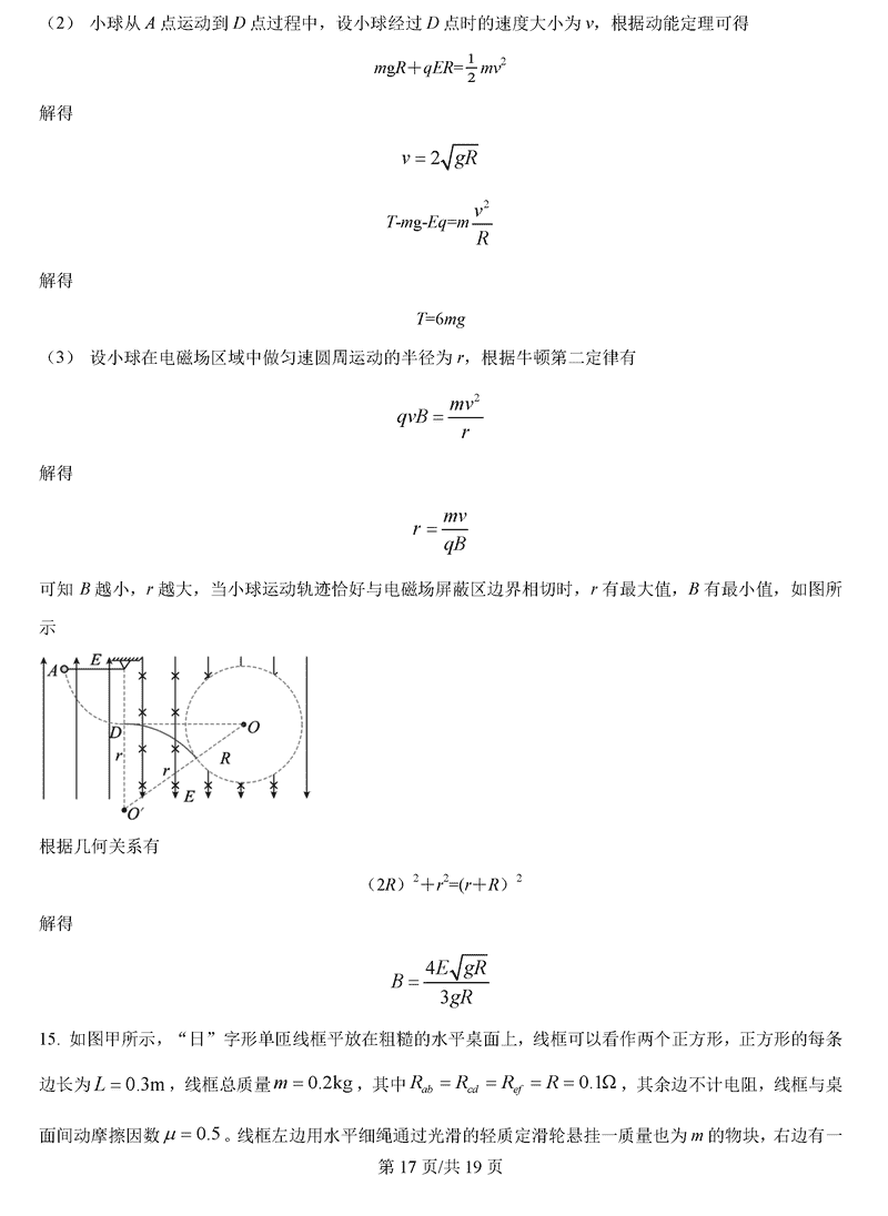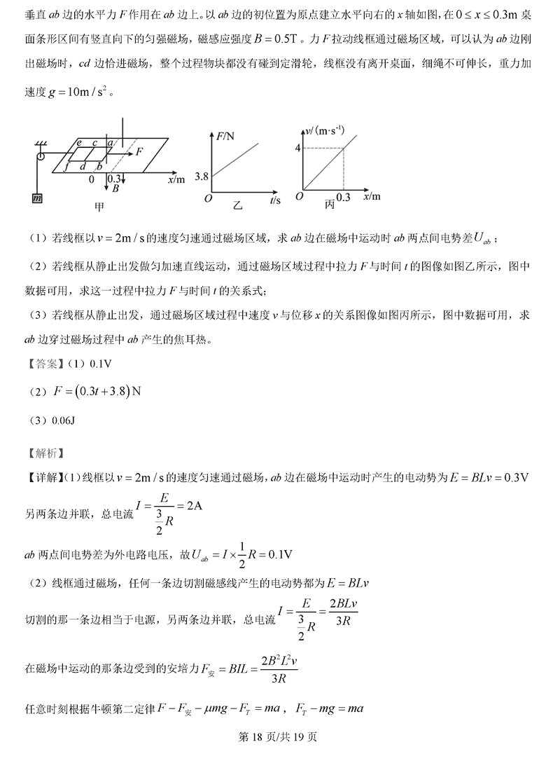 四川师大附中2025届高三下三诊模拟二物理试题及答案