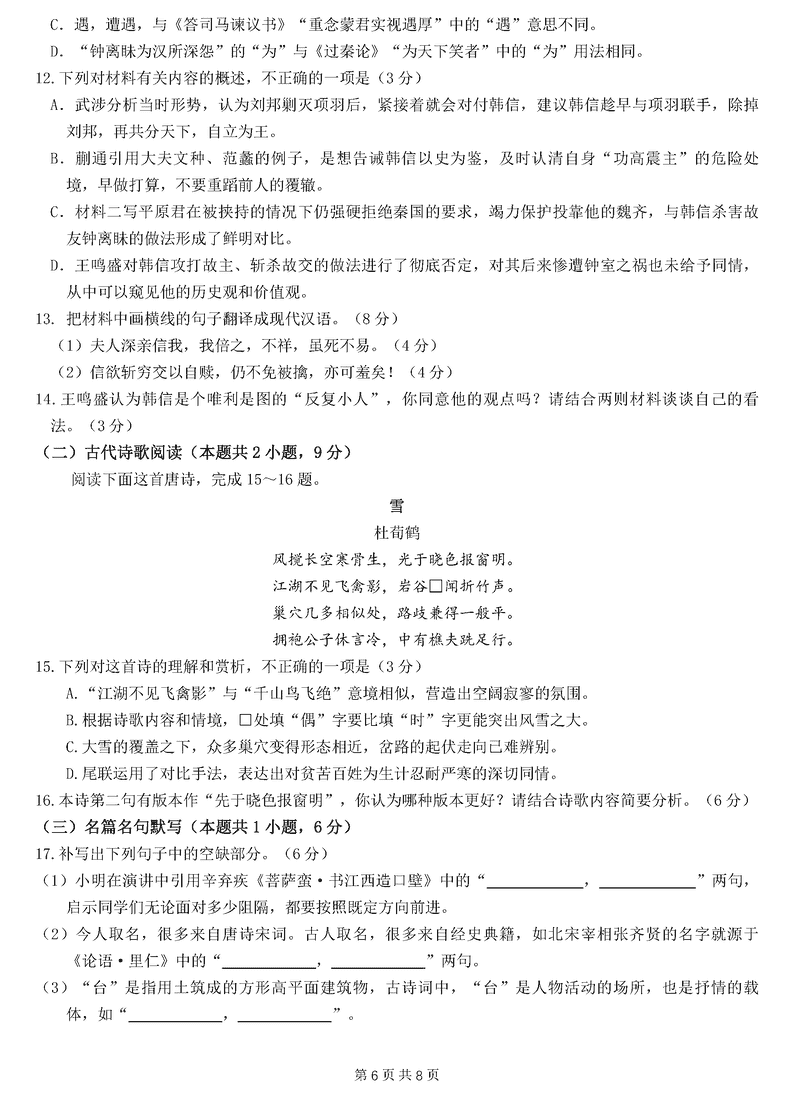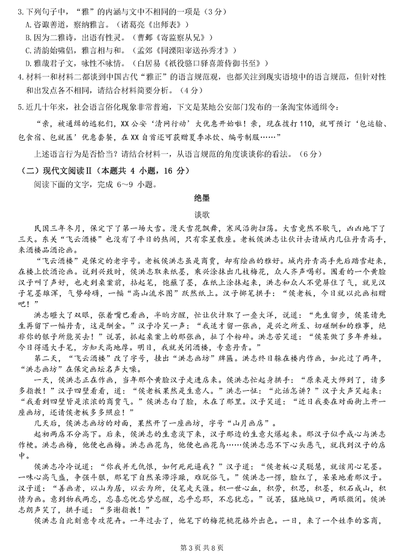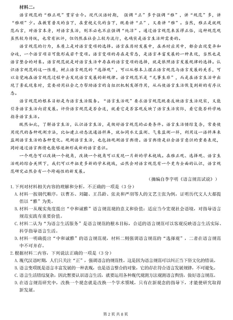 四川师大附中2025届高三下三诊模拟二语文试题及答案