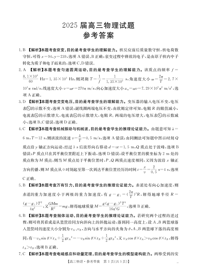 四川金太阳2025届高三5月联考物理试题及答案 时间:2025-05-20 四川 理综试题 四川金太阳2025届高三5月联考(25-507C)物理考试已于近日开考,为方便考生考后及时查看考试情况,查漏补缺、弥补不足,本文整理了试题答案解析相关信息! 汇总:四川金太阳2025届高三5月联考试题及答案汇总 物理试题及答案解析