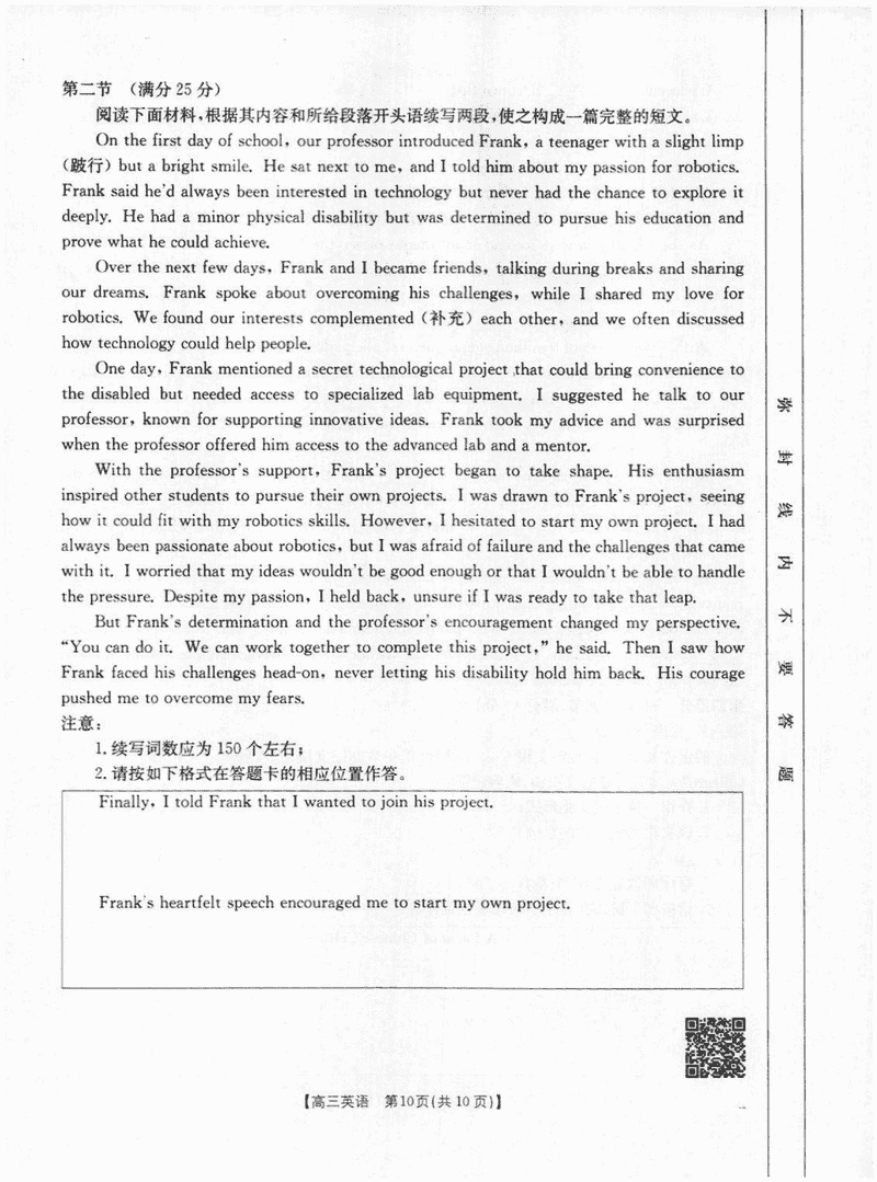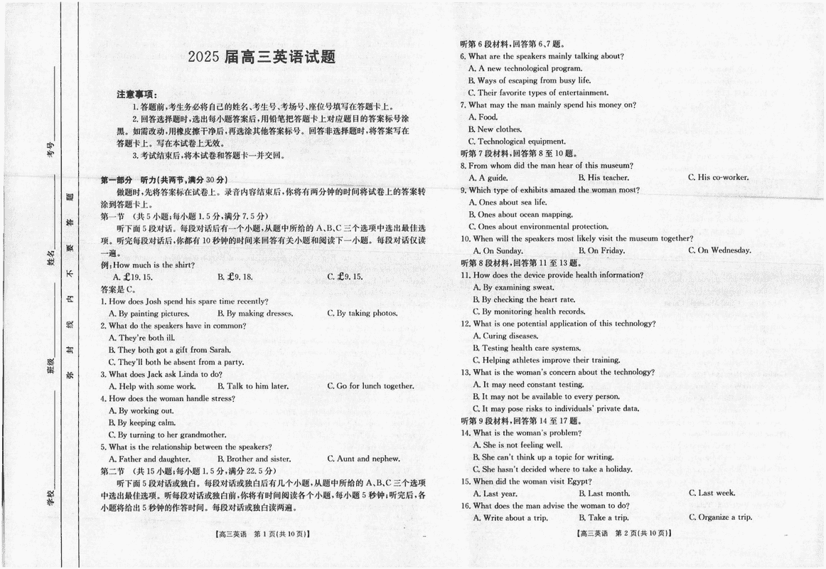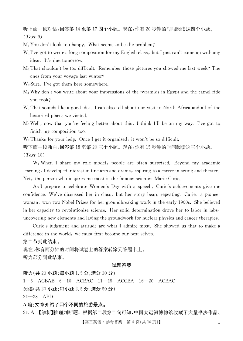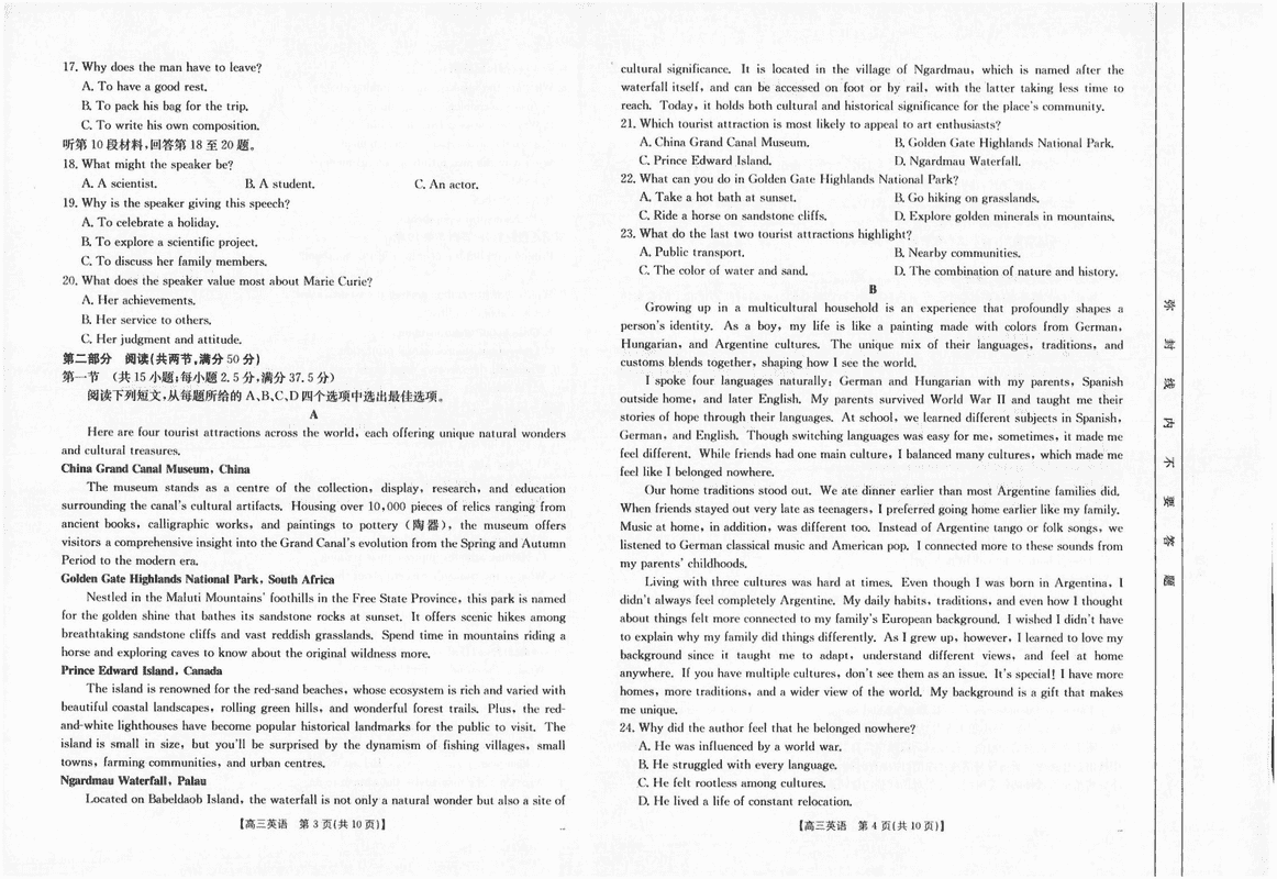 四川金太阳2025届高三5月联考英语试题及答案 时间:2025-05-20 四川 英语试题 四川金太阳2025届高三5月联考(25-507C)英语考试已于近日开考,为方便考生考后及时查看考试情况,查漏补缺、弥补不足,本文整理了试题答案解析相关信息! 汇总:四川金太阳2025届高三5月联考试题及答案汇总 英语试题及答案解析