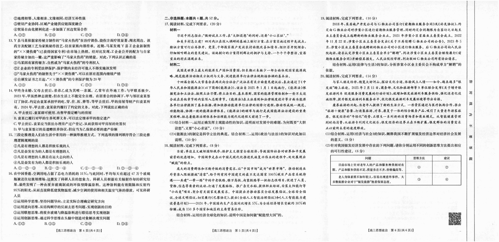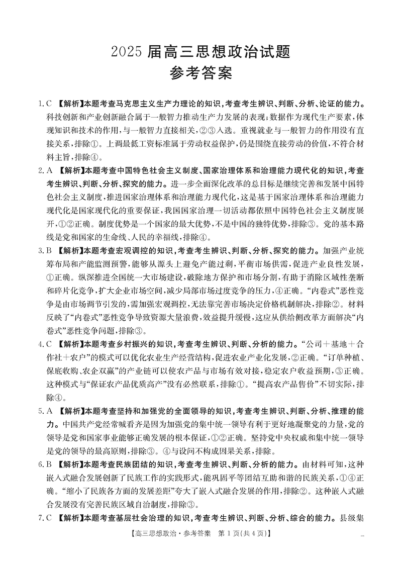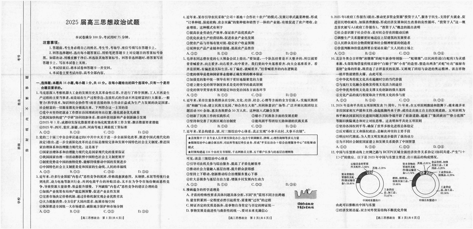 四川金太阳2025届高三5月联考政治试题及答案 时间:2025-05-20 四川 文综试题 四川金太阳2025届高三5月联考(25-507C)政治考试已于近日开考,为方便考生考后及时查看考试情况,查漏补缺、弥补不足,本文整理了试题答案解析相关信息! 汇总:四川金太阳2025届高三5月联考试题及答案汇总 政治试题及答案解析