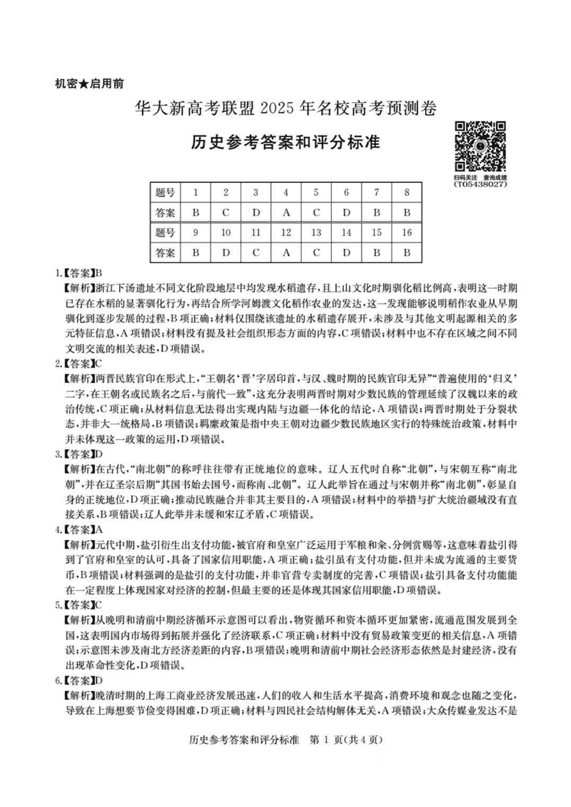 华大新高考联盟2025年名校高考预测卷历史试题及答案 时间:2025-05-20 文综试题 华大新高考联盟2025年名校高考预测卷历史考试已于近日开考,为方便考生考后及时查看考试情况,查漏补缺、弥补不足,本文整理了试题答案解析相关信息! 汇总:华大新高考联盟2025年名校高考预测卷试题及答案汇总 历史试题及答案解析