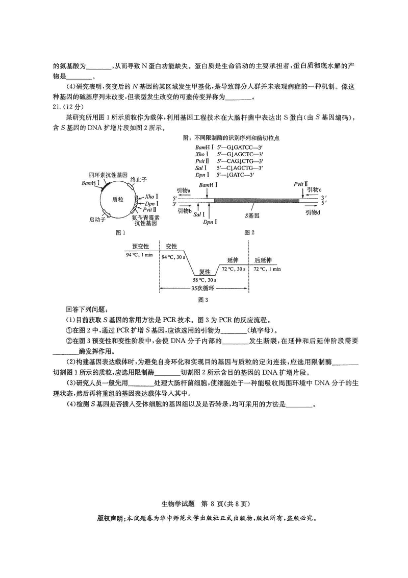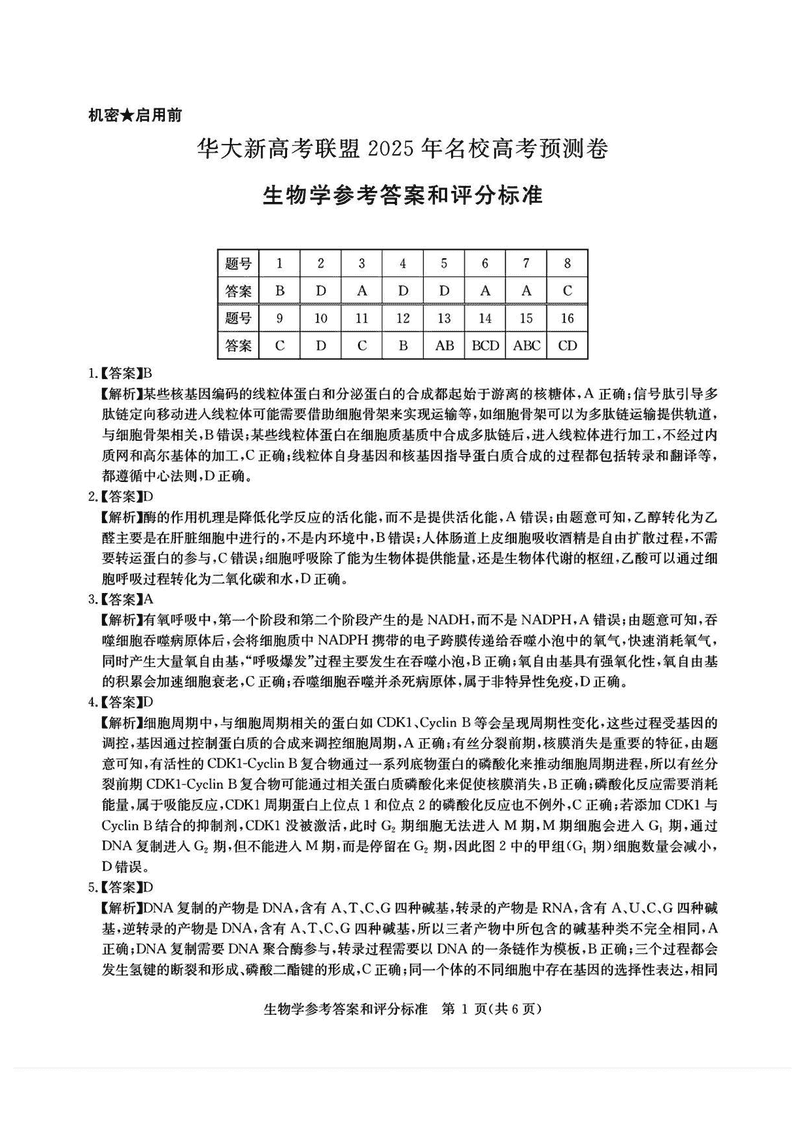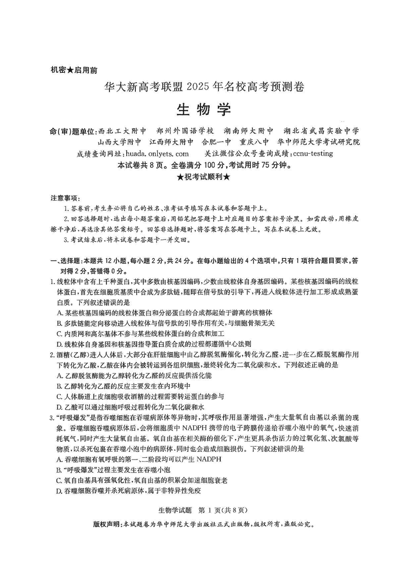 华大新高考联盟2025年名校高考预测卷生物试题及答案 时间:2025-05-20 理综试题 华大新高考联盟2025年名校高考预测卷生物考试已于近日开考,为方便考生考后及时查看考试情况,查漏补缺、弥补不足,本文整理了试题答案解析相关信息! 汇总:华大新高考联盟2025年名校高考预测卷试题及答案汇总 生物试题及答案解析