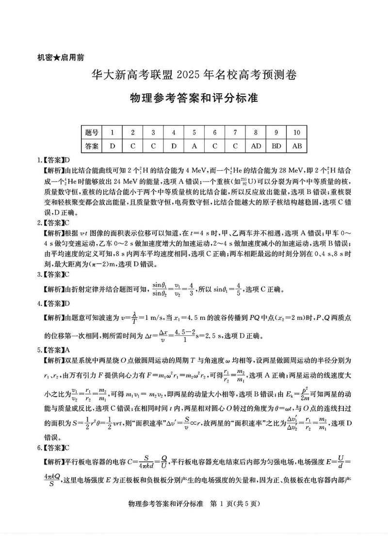 华大新高考联盟2025年名校高考预测卷物理试题及答案 时间:2025-05-20 理综试题 华大新高考联盟2025年名校高考预测卷物理考试已于近日开考,为方便考生考后及时查看考试情况,查漏补缺、弥补不足,本文整理了试题答案解析相关信息! 汇总:华大新高考联盟2025年名校高考预测卷试题及答案汇总 物理试题及答案解析