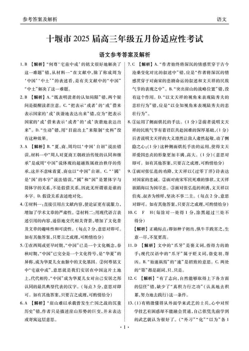 湖北十堰市2025届高三下学期五月份适应性语文考试已于近日开考,为方便考生考后及时查看考试情况,查漏补缺、弥补不足,本文整理了试题答案解析相关信息!