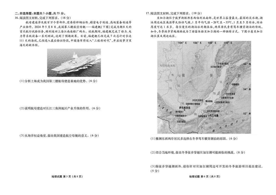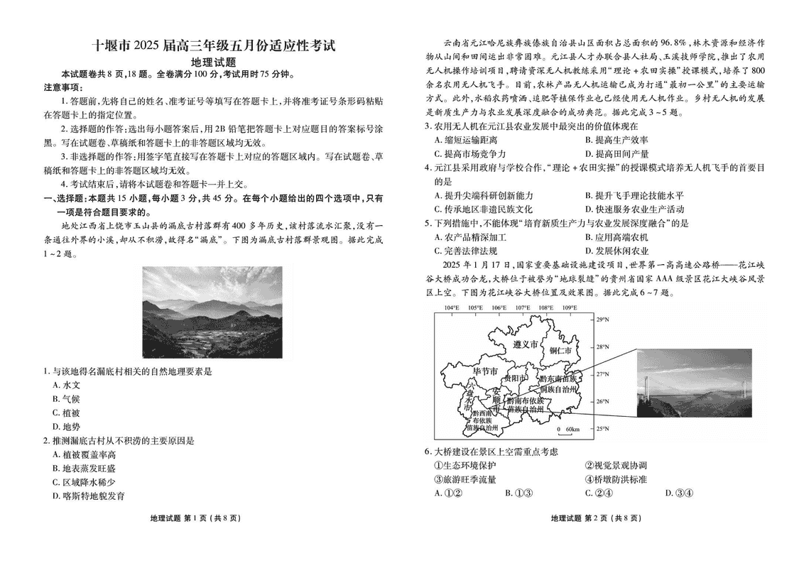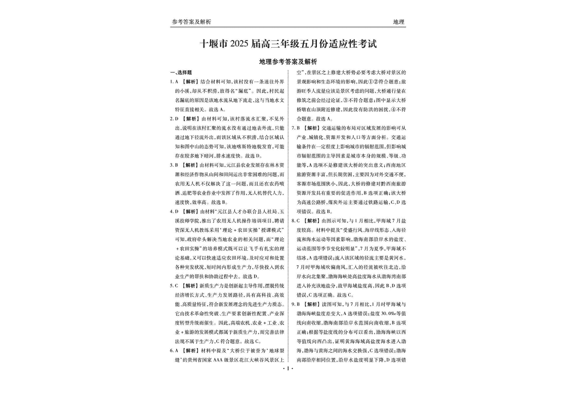 十堰市2025届高三下学期五月份适应性地理试题及答案
