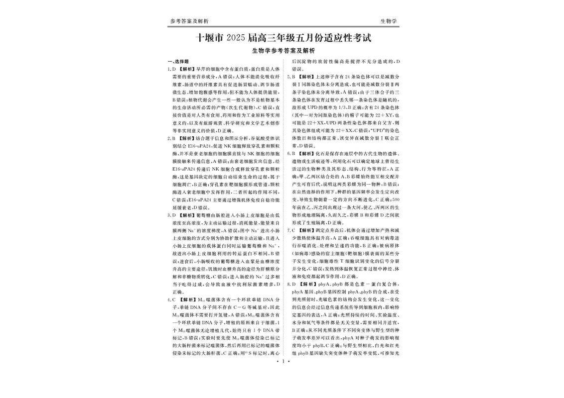 湖北十堰市2025届高三下学期五月份适应性生物考试已于近日开考,为方便考生考后及时查看考试情况,查漏补缺、弥补不足,本文整理了试题答案解析相关信息!