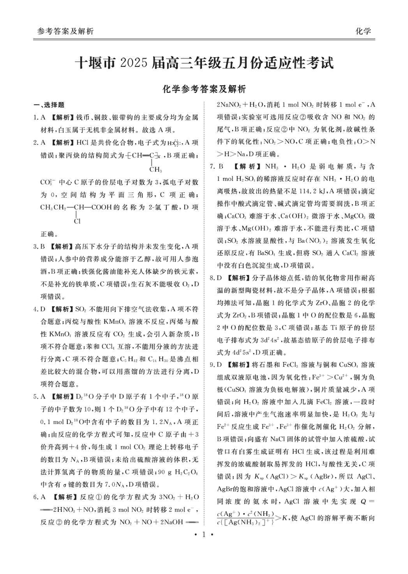 湖北十堰市2025届高三下学期五月份适应性化学考试已于近日开考,为方便考生考后及时查看考试情况,查漏补缺、弥补不足,本文整理了试题答案解析相关信息!