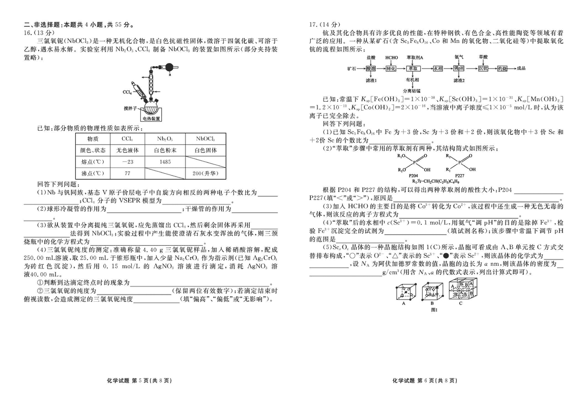 十堰市2025届高三下学期五月份适应性化学试题及答案