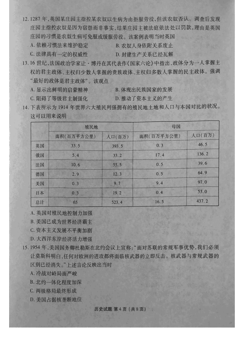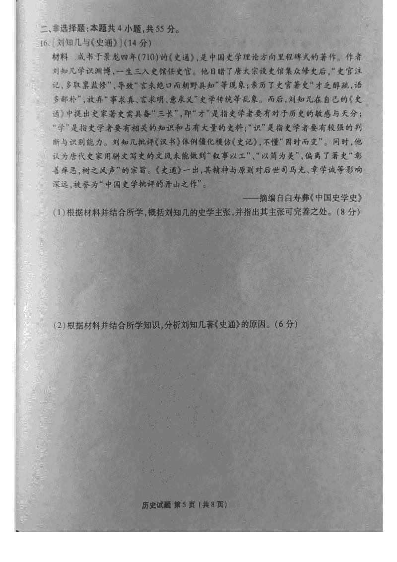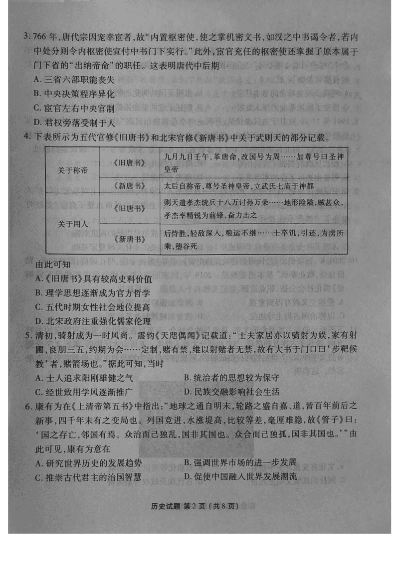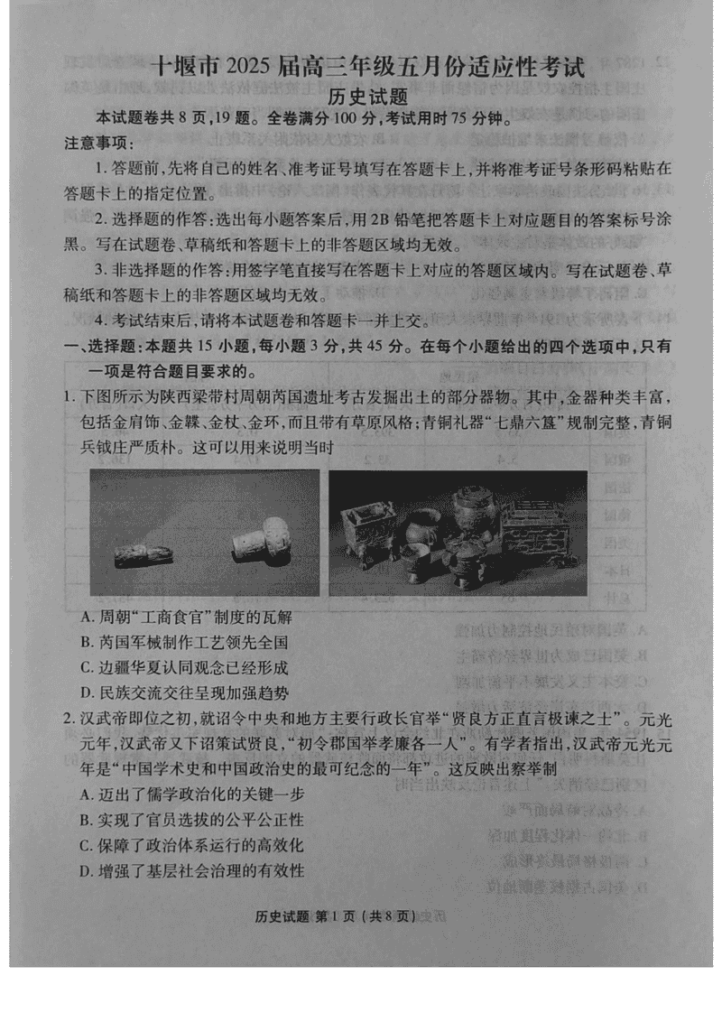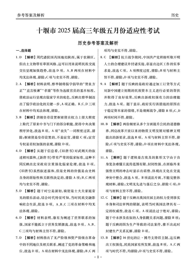 十堰市2025届高三下学期五月份适应性历史试题及答案